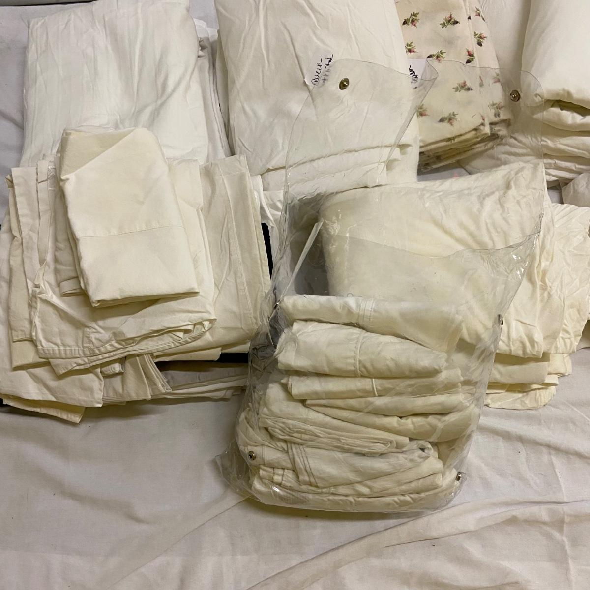 This lot contains a variety of queen size bedding essentials! Included is two Queen down comforters, one is branded “IKEA” and one is “Robin Wilson”. Two duvet covers and an assortment of queen size fitted and flat sheets and many pillowcases (over 20). Some sheets are a set, some are not. Local pick up only.
