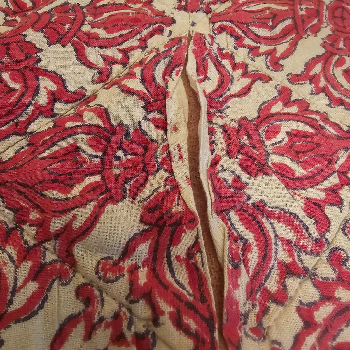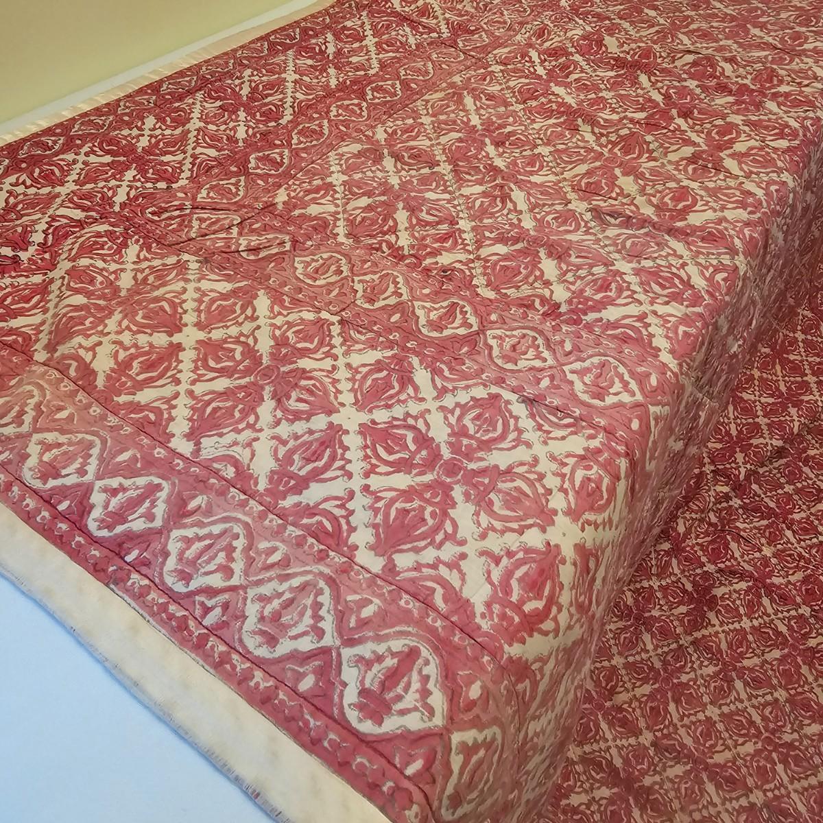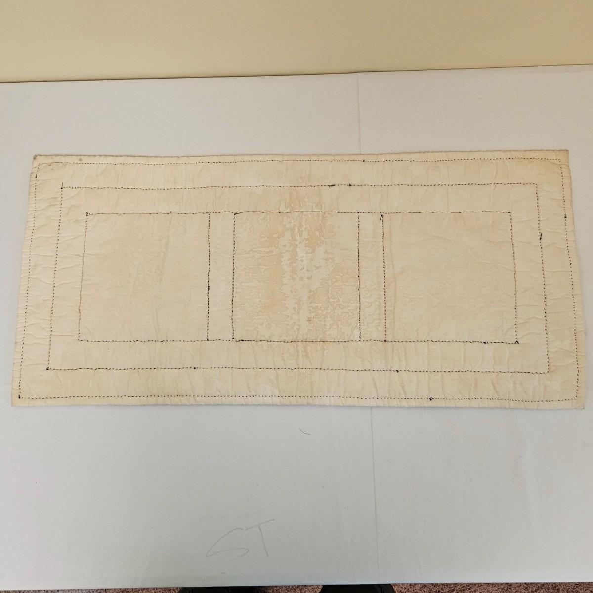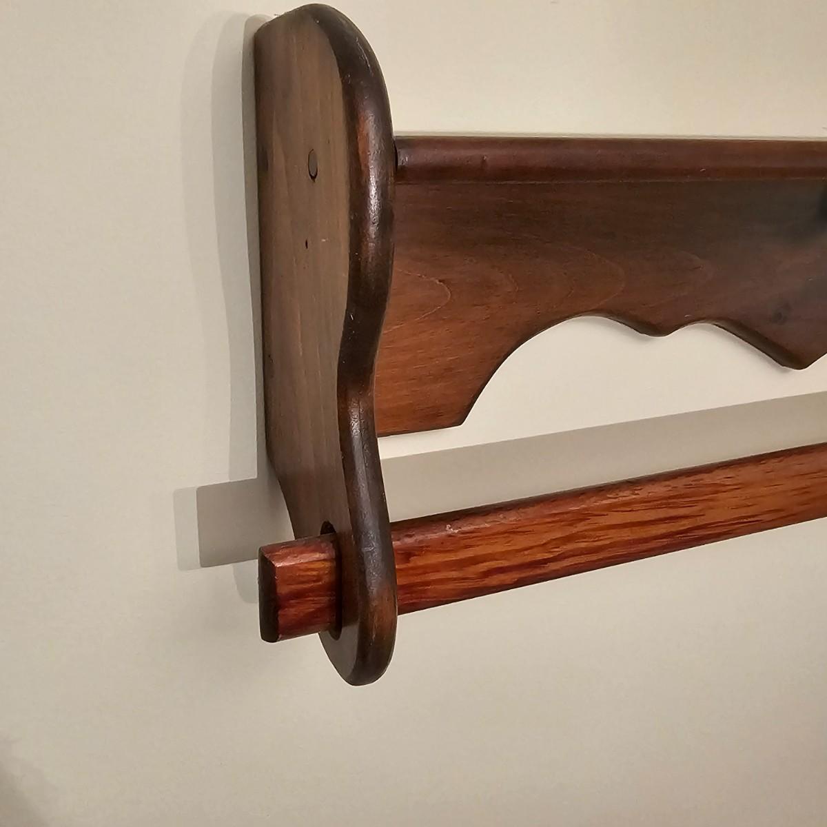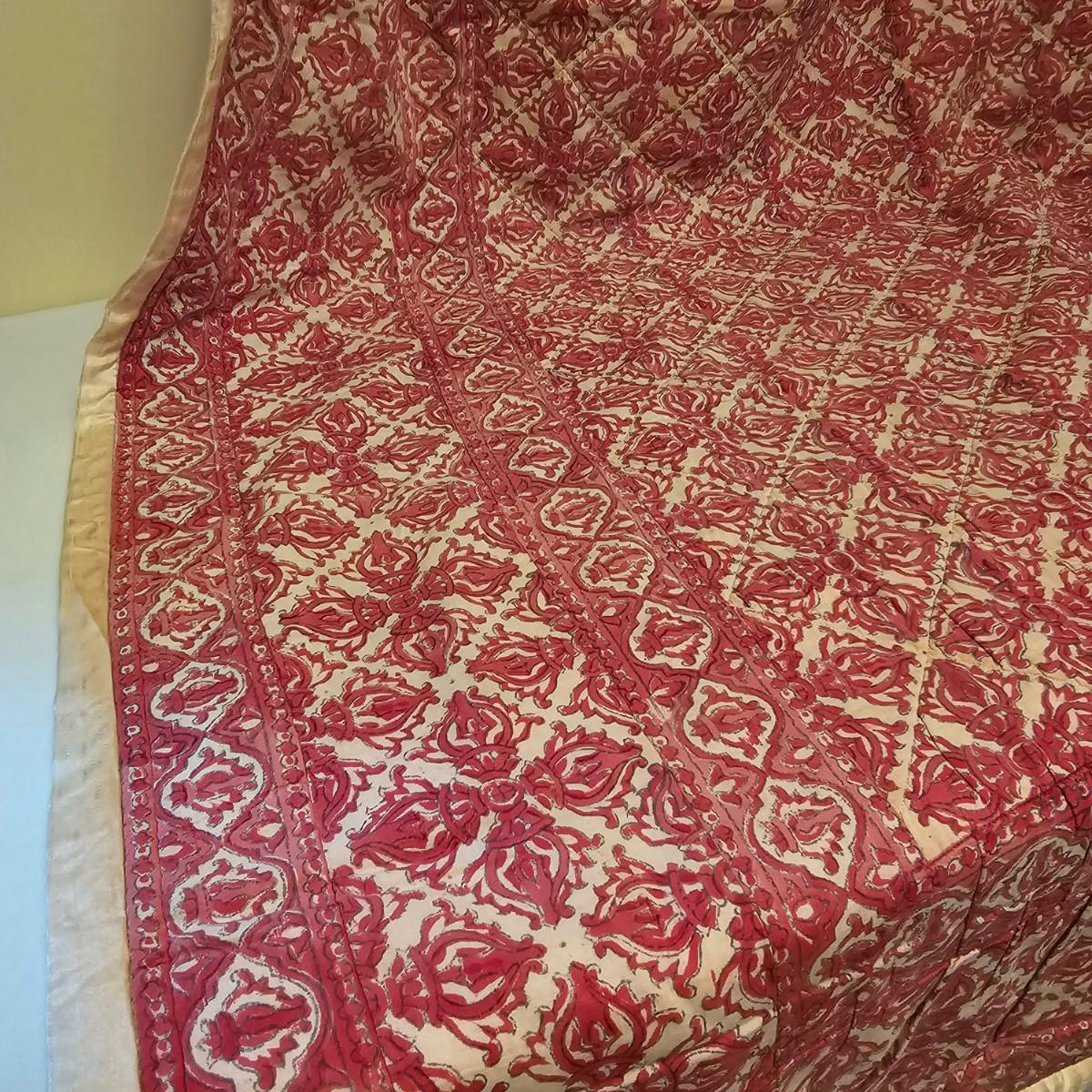 A rainbow of colors represents itself in these novel quilts and wall hangers. All sizes and shapes. Red/white squares piece is 36" x 46", has knotted ties at the corners. The four squares item is 39" x 54". Rag edge piece is 32"Sq, and the apples themed one is 41"Sq. Santa measures up at 22.5" x 27.5". Apple runner is 31.5" x 14.5", has some spotting on edges. Placemat is 22.5" x 14". Larger pink quilt, sometimes referred to as a 'cutter' to be used for pieces on other projects. Significant ragging on edges, this item measures 72" x 82". The large red floral piece is 66" x 102". Has some faded and worn spots on edges. Lastly is the quilt rack with cutout heart motif and removable hanging bar. Measures 46" x 5" x 11"H. All items used. See photos for details. Local pickup only.