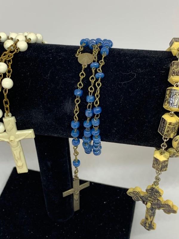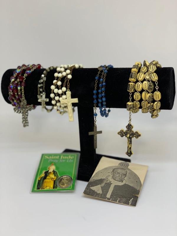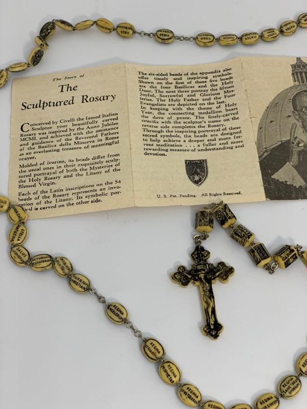 Assorted Rosary including VINTAGE  "TERRA DELLE CATACOMB"  RELIC SCULPTURED ROSARY BY CIVELLI, ITALY.