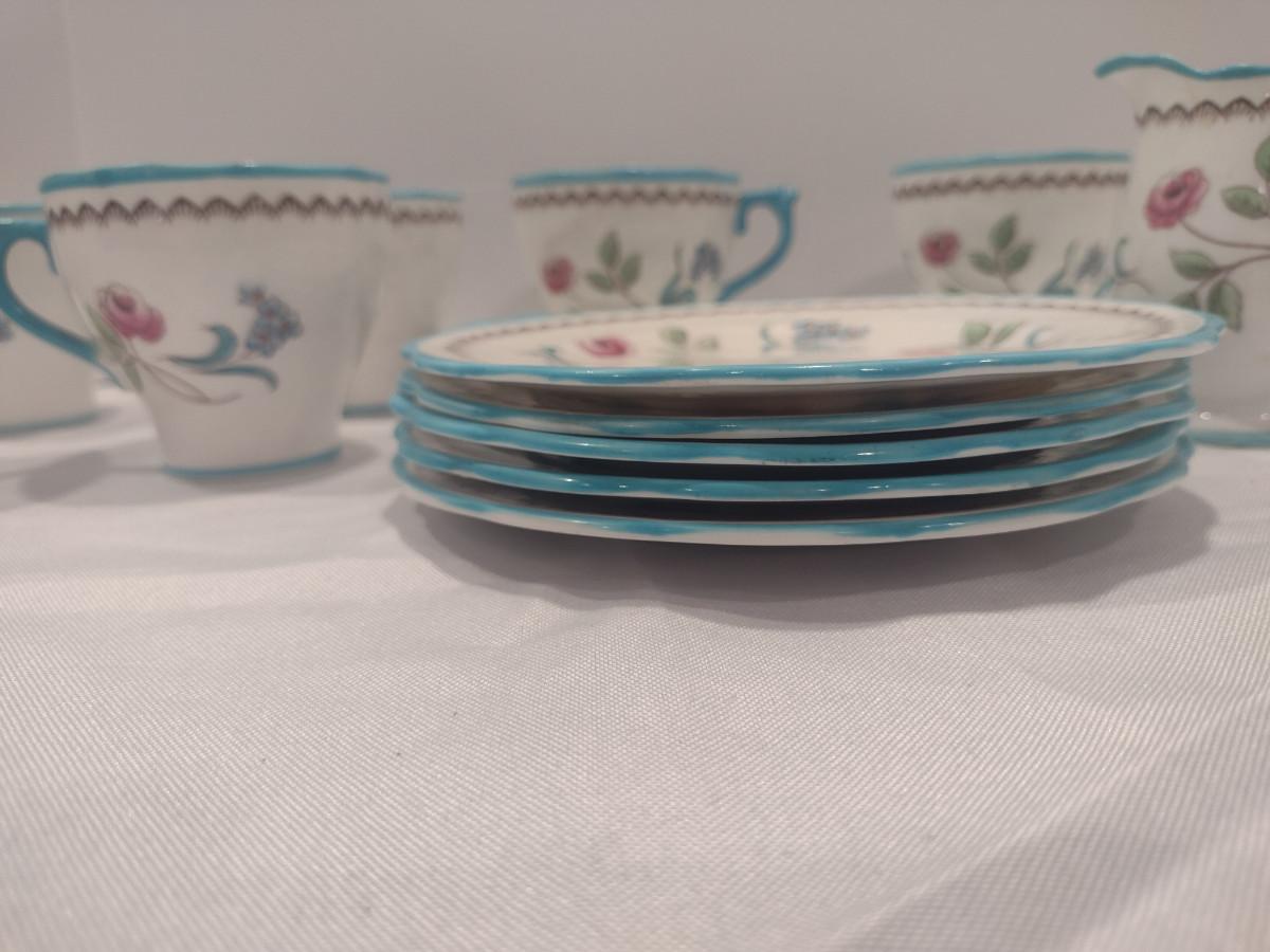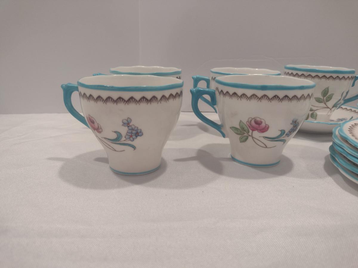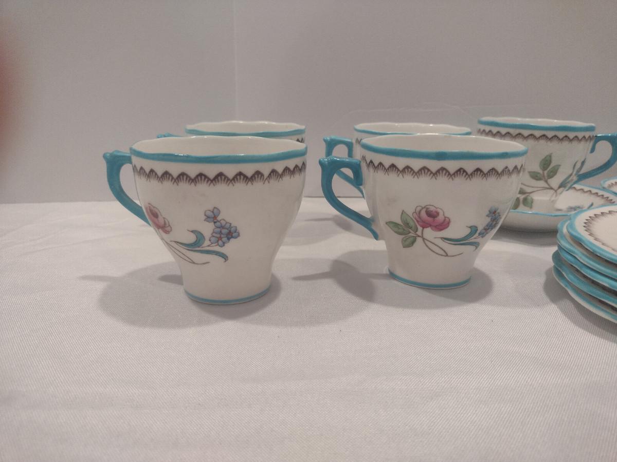 Assorted Roslyn China 'Derwent' Pattern- Approx 14 Pieces. 5 snack/bread plates, 6 cups, 2 saucers, and creamer.