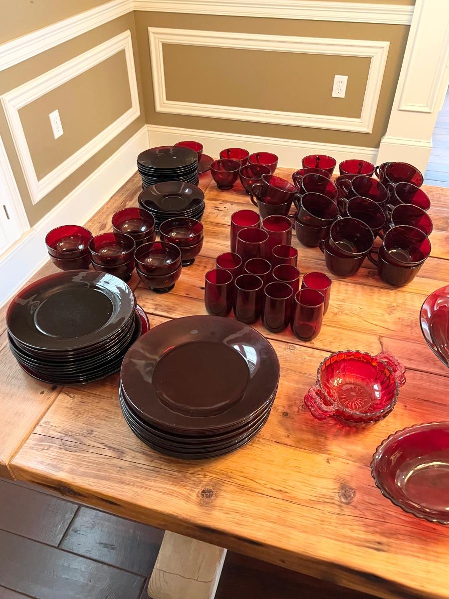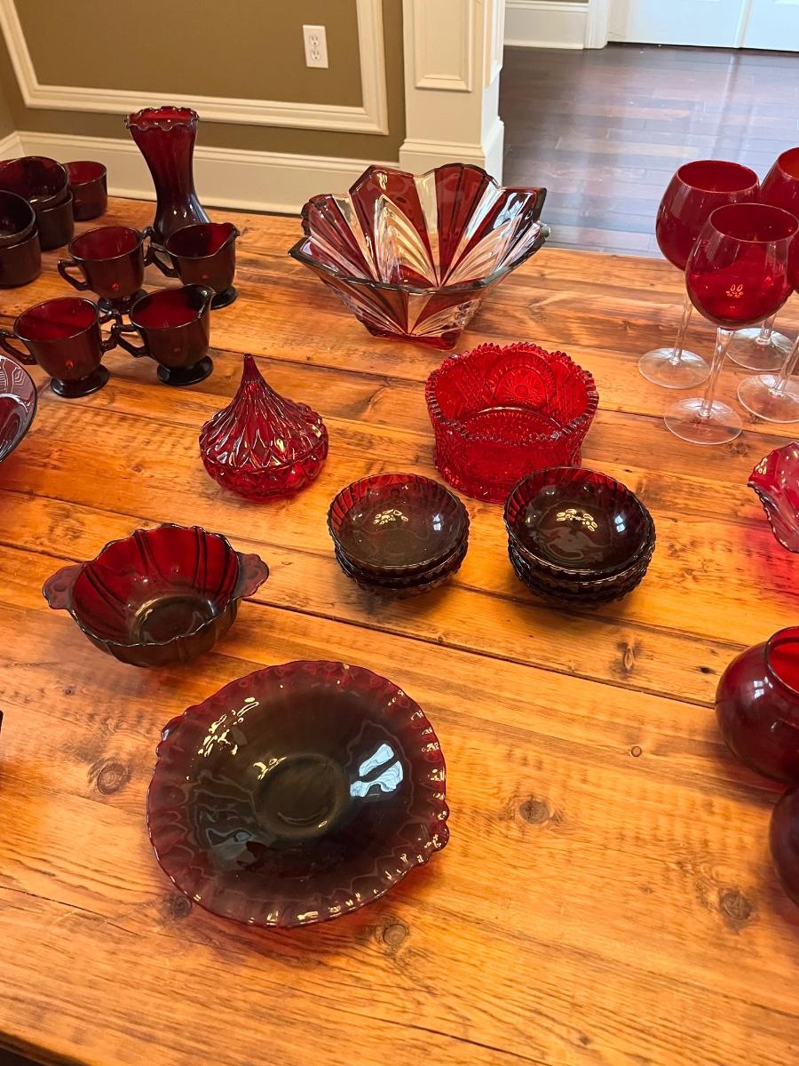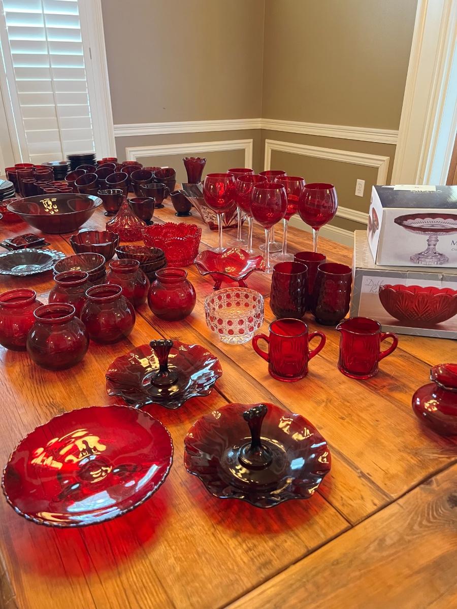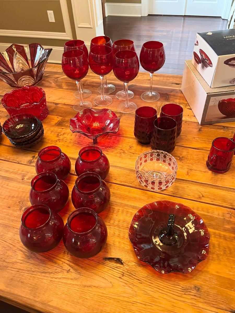 Assorted Ruby Red Glassware ~ 155 Pieces