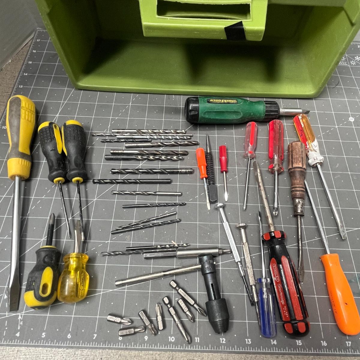 Assorted Screwdrivers Drill Bits Tool Lot Case