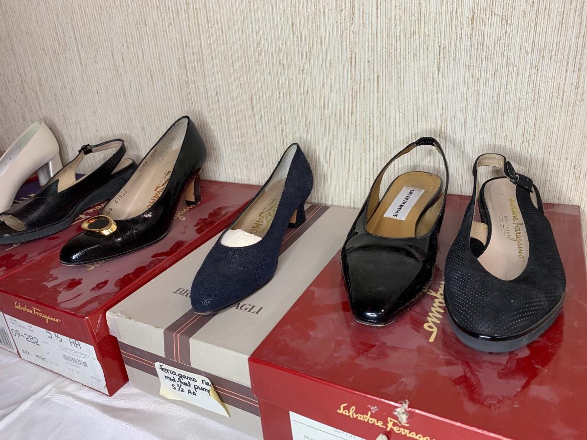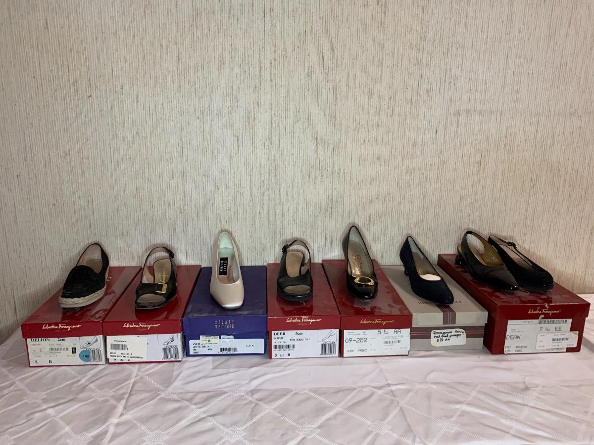 Varying brands of shoes between 5 - 5.5 size women’s. Mostly Salvador Ferragamo. From lightly used to brand new condition.