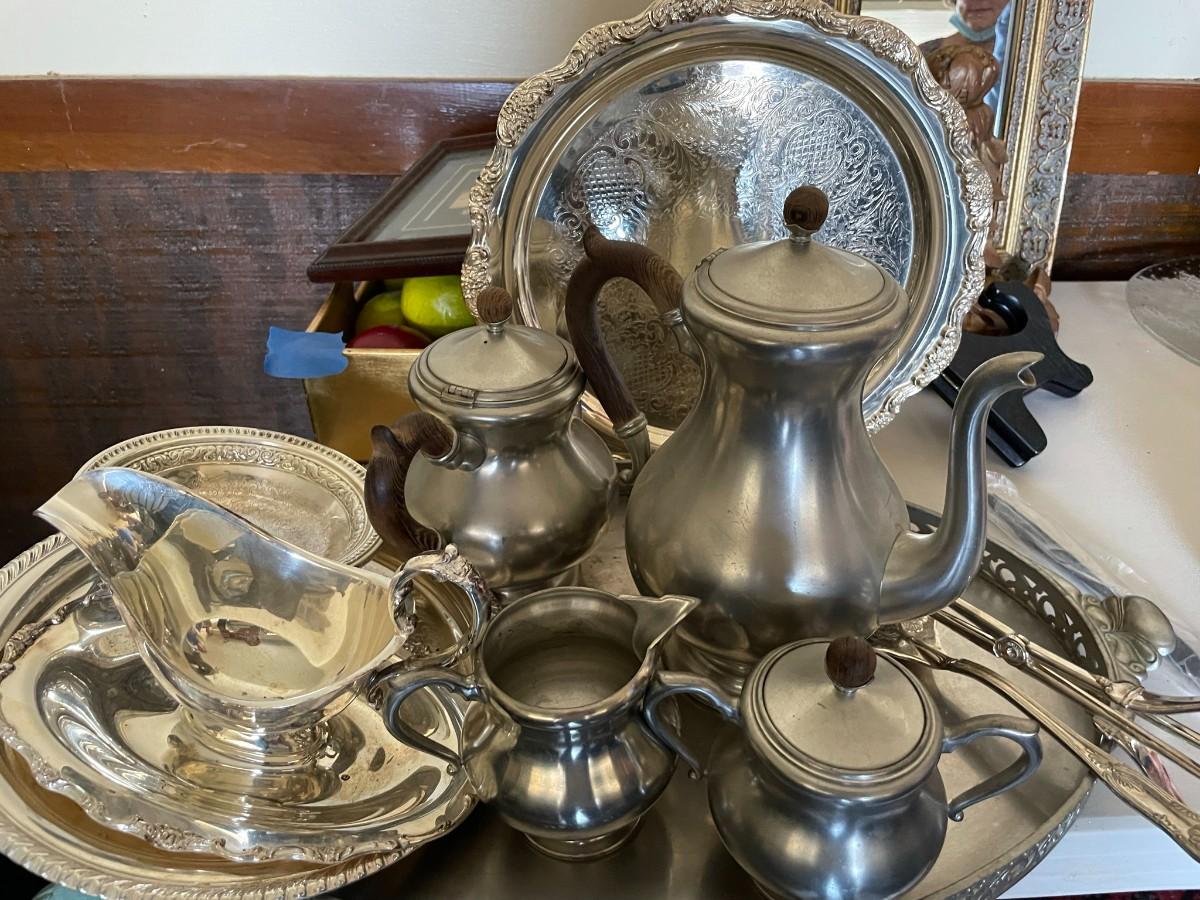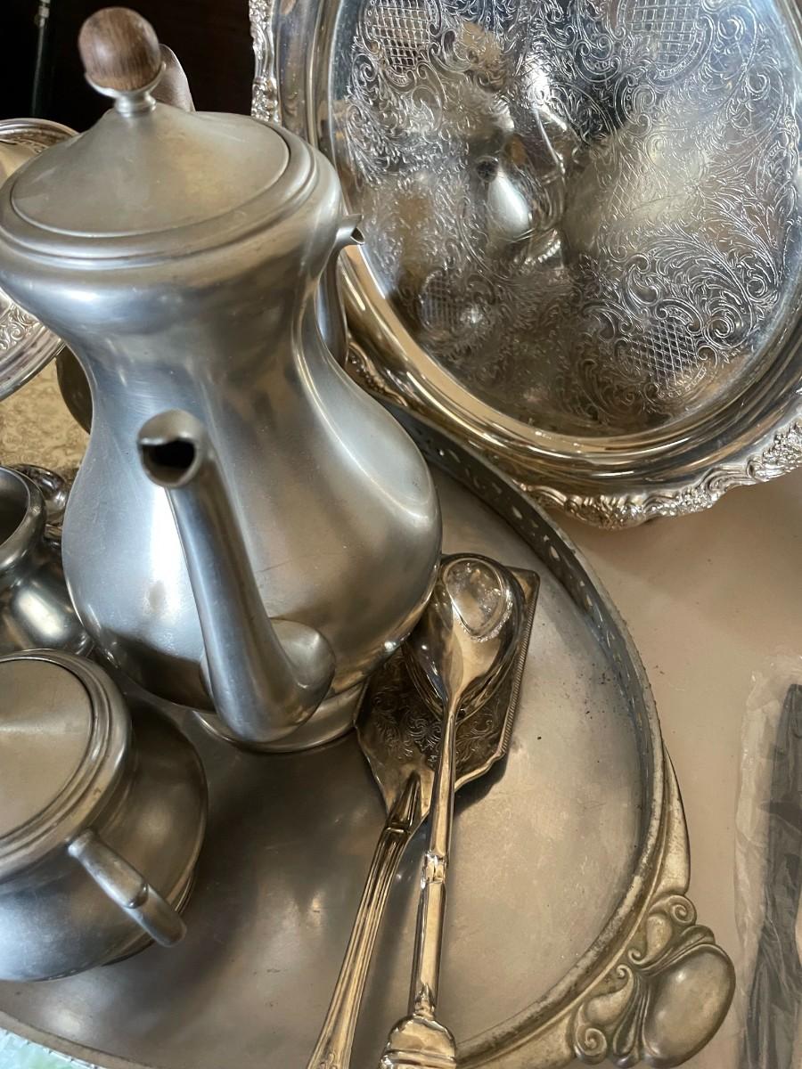 Silver Plate /Serveware & Pewter Serveware - Coffee Server, sugar/creamer, trays, various other items