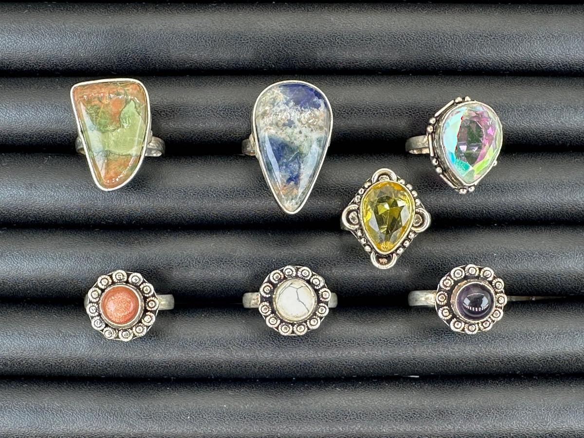 1. Assorted Silver Plated Handmade Gemstone Rings for Women ; Sizes 4 to 10-Alloy Metal Silver Plated