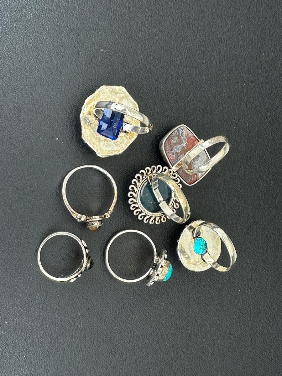 1. Assorted Silver Plated Handmade Gemstone Rings for Women ; Sizes 4 to 10--Alloy Metal Silver Plated