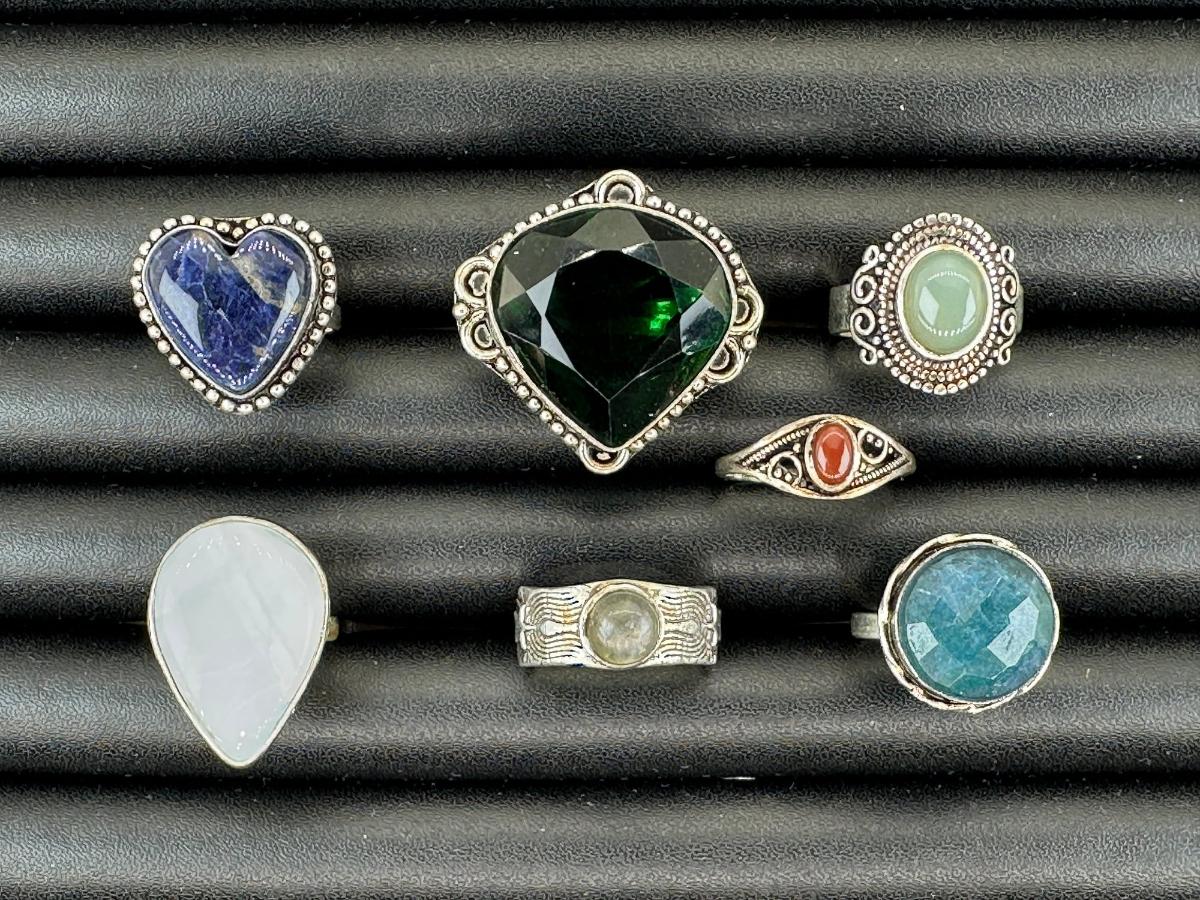 Assorted Silver Plated Handmade Gemstone Rings For Women Sizes 4 To 10