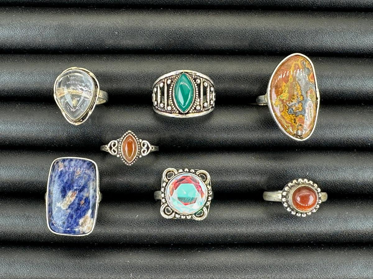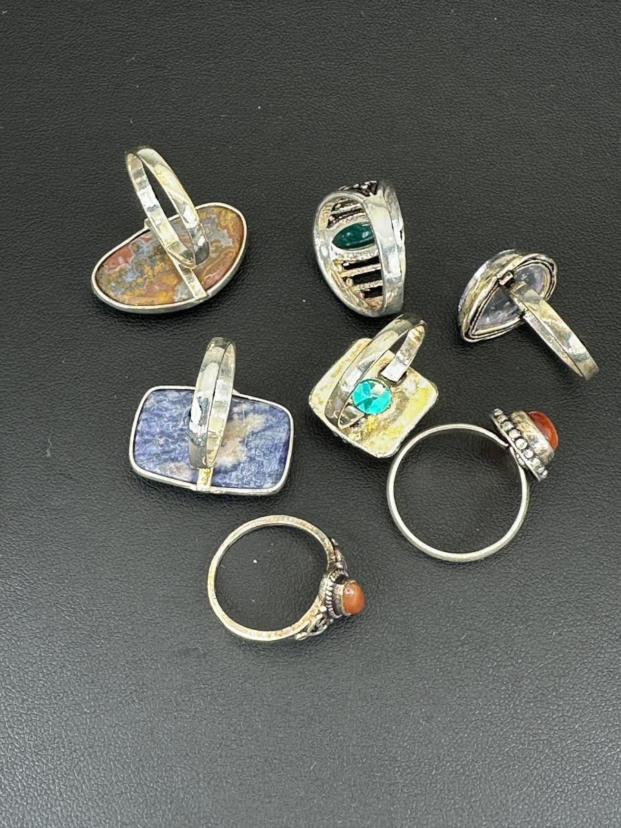 Assorted Silver Plated Handmade Gemstone Rings For Women Sizes 4 To 10