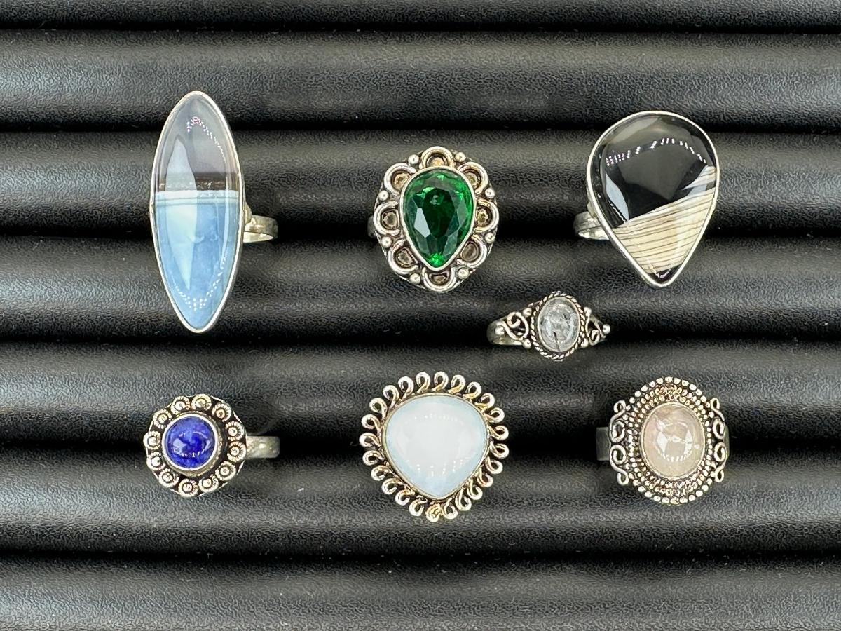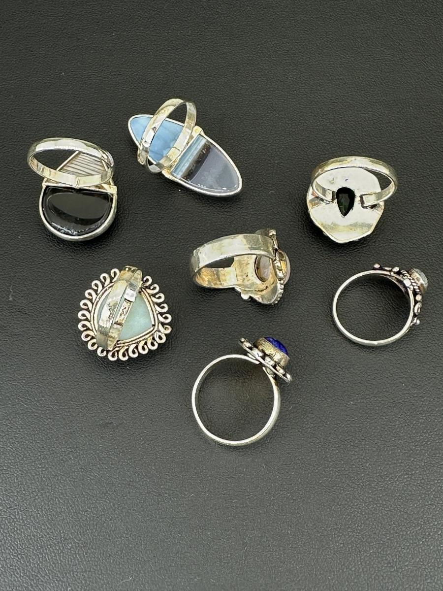 1. Assorted Silver Plated Handmade Gemstone Rings for Women ; Sizes 4 to 10-Alloy Metal Silver Plated