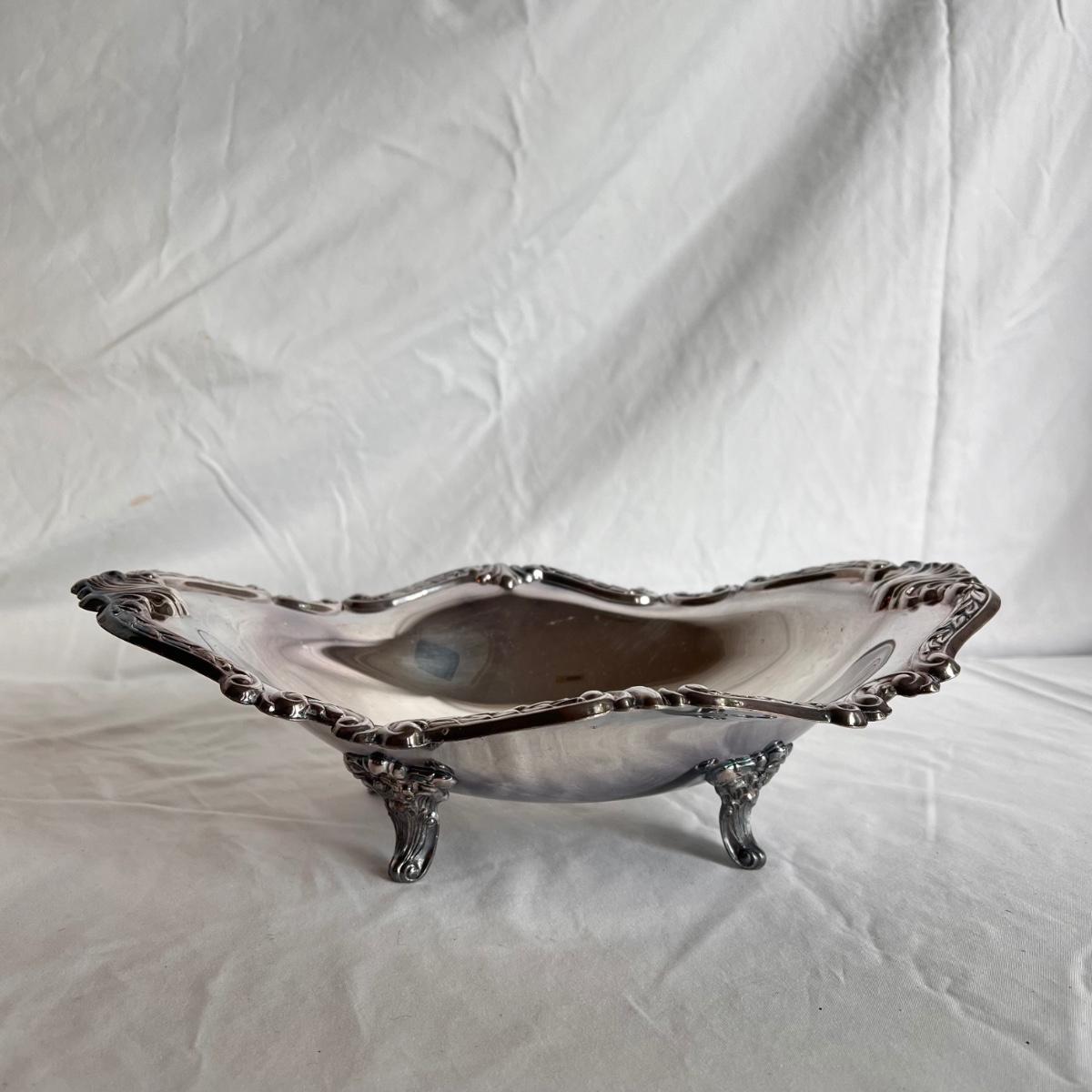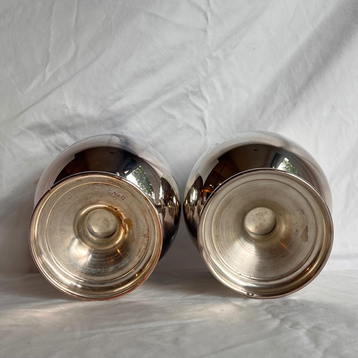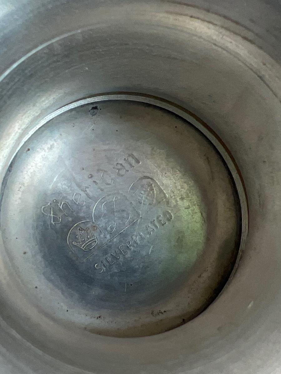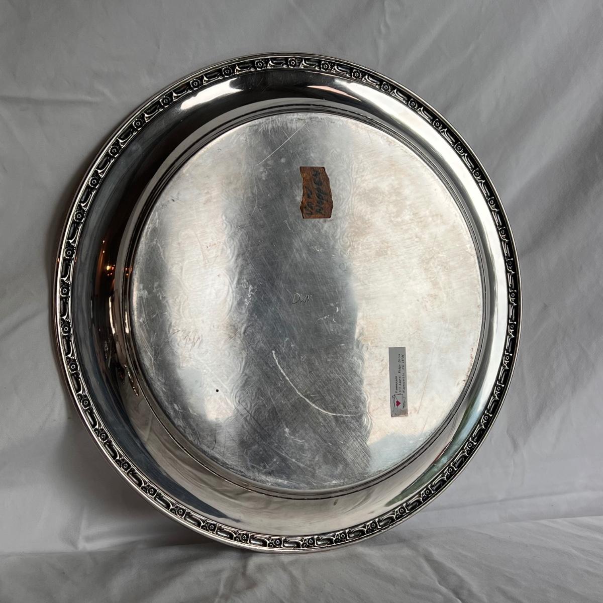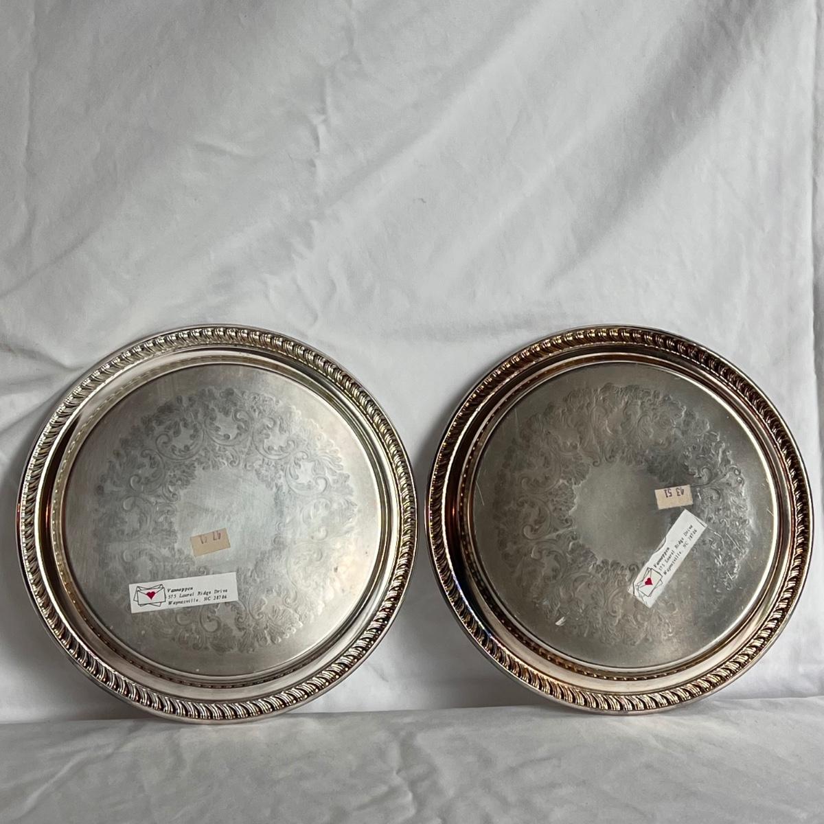 This lot included one large serving tray with “W.G.C. 1964 Medalist Doug VanNoppen” engraved, two plates with “25th Balsam Invitational 1957-1982” engraved, one deep bowl with “Apache Flight Winner” engraved, and two large cups with Sheridan silver plates stamped on the bottom. The largest dish measures 14.95” x .95”H. Shipping available.