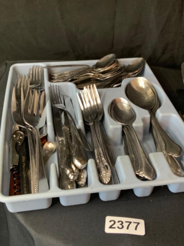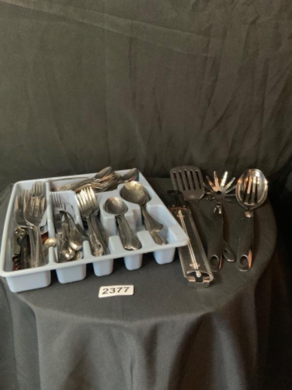 Assorted silverware and serving pieces Lot 2377