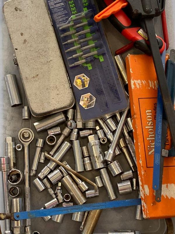 Assorted Sockets, Hacksaw, Clamp (does not include tub) Lot 473