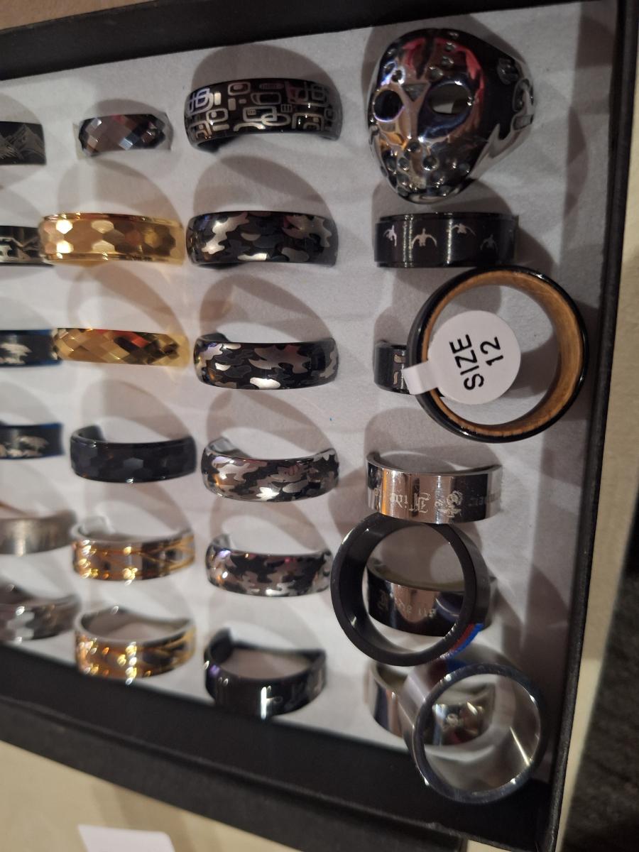 assorted stainless steel and tungsten rings