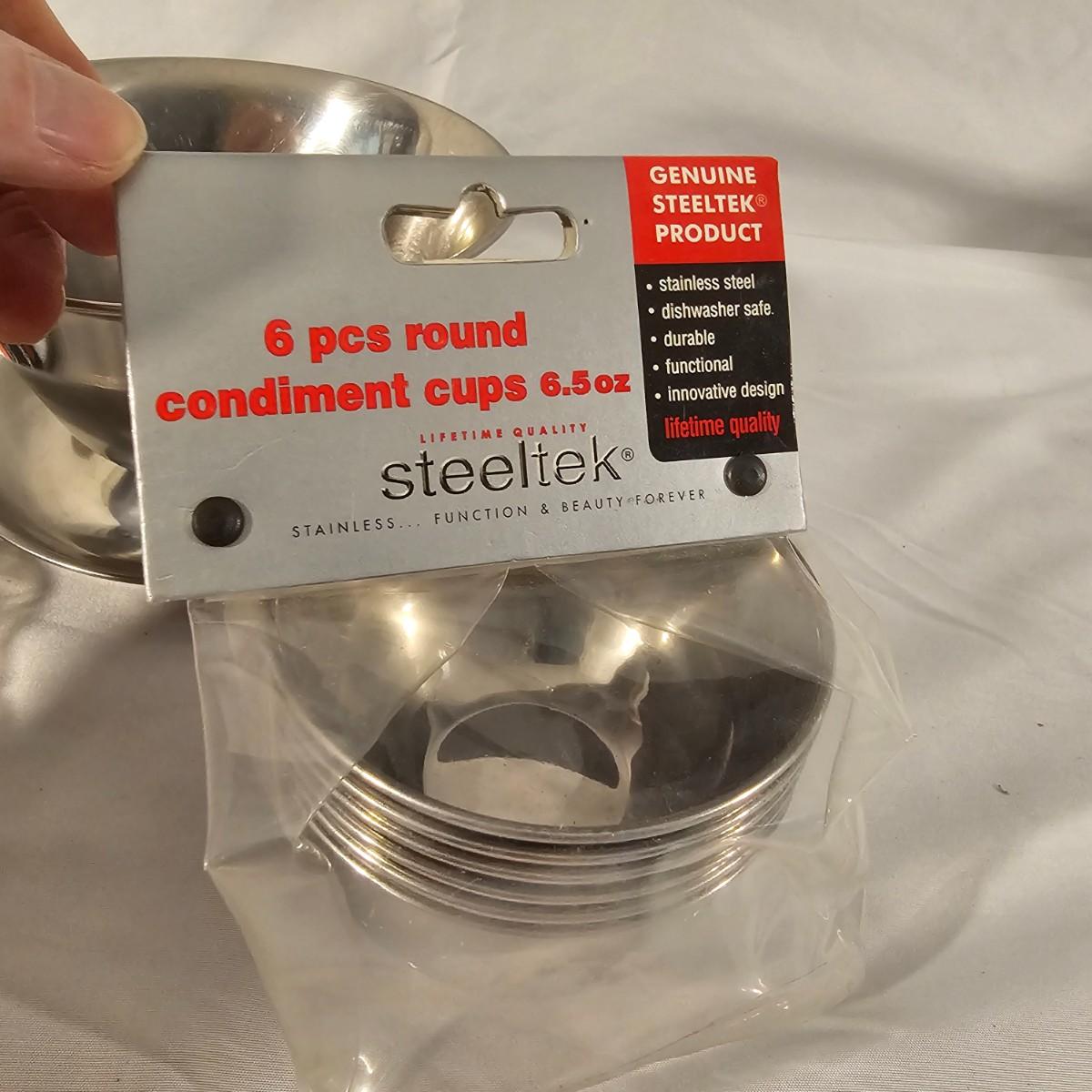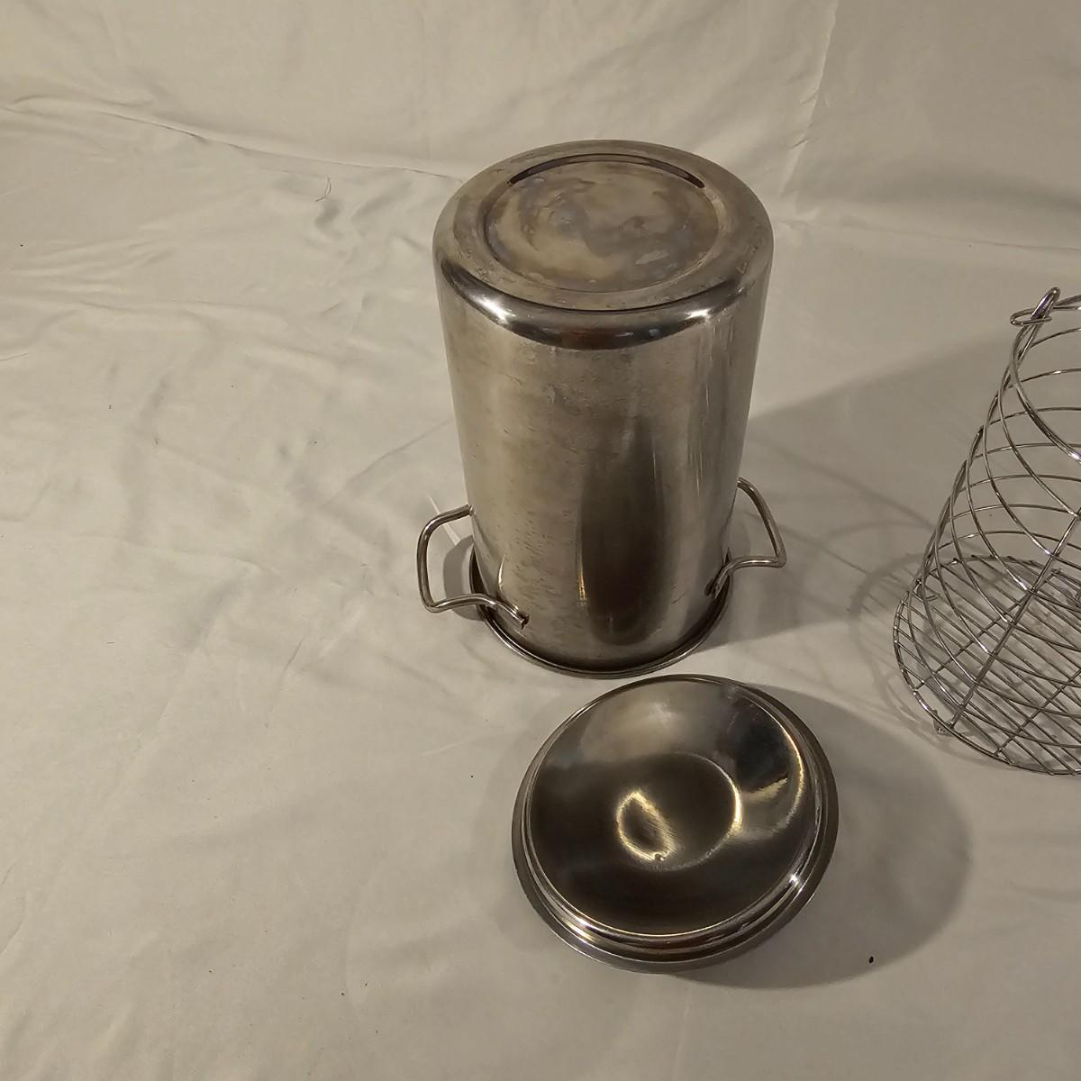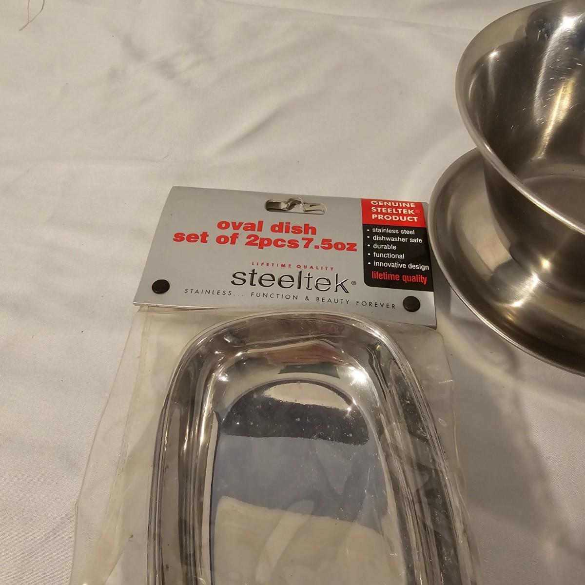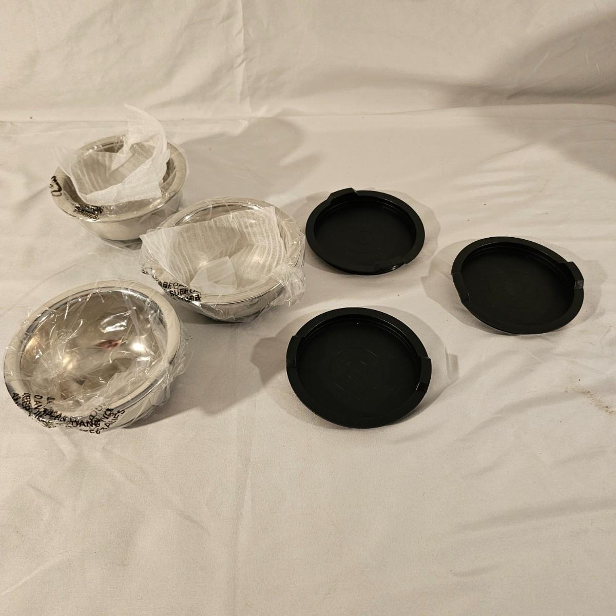 Bowls, platters, measuring cups, storage, more. All items stainless unless otherwise marked. Large bowl set by Cooks Essentials with lids, largest is 10"D. Round platter is 12.5"D, oval is 16" x 10.5". Set of off-size measuring cups. See photos for details. Shipping available.