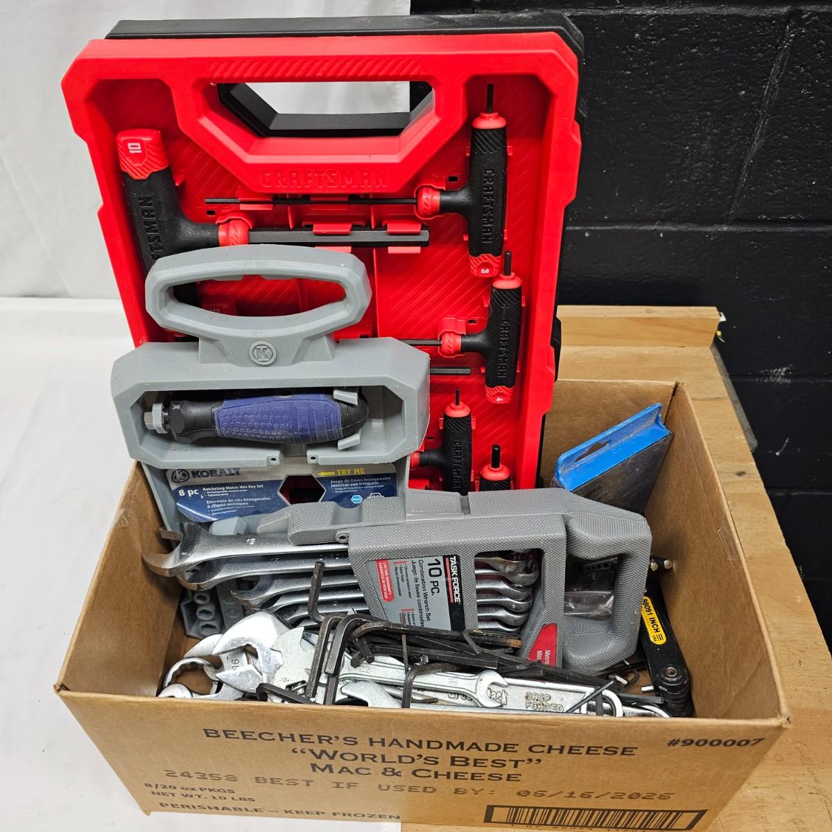 Items in sets, containers and loose. Craftsman Allen wrench sets and holders in metric and SAE. Items by Task Force, Kobalt and more. Large Kobalt 1" wrench is 14" long. See photos for details. Local pickup only.