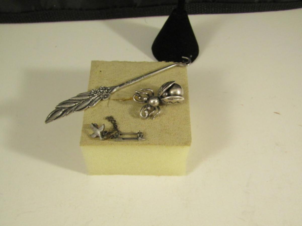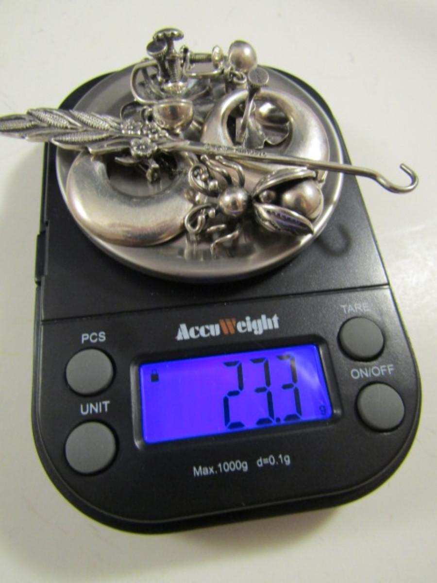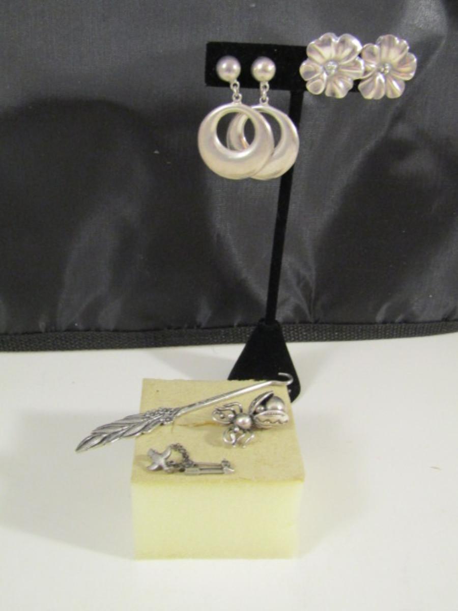 Assorted Sterling Silver Accessories- Earrings, Pin, Glove Button Hook, and Collar Pin- Approx 23.3 Grams (#23). Earrings are screw-back.