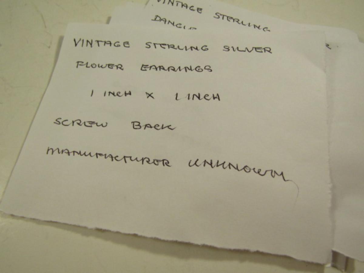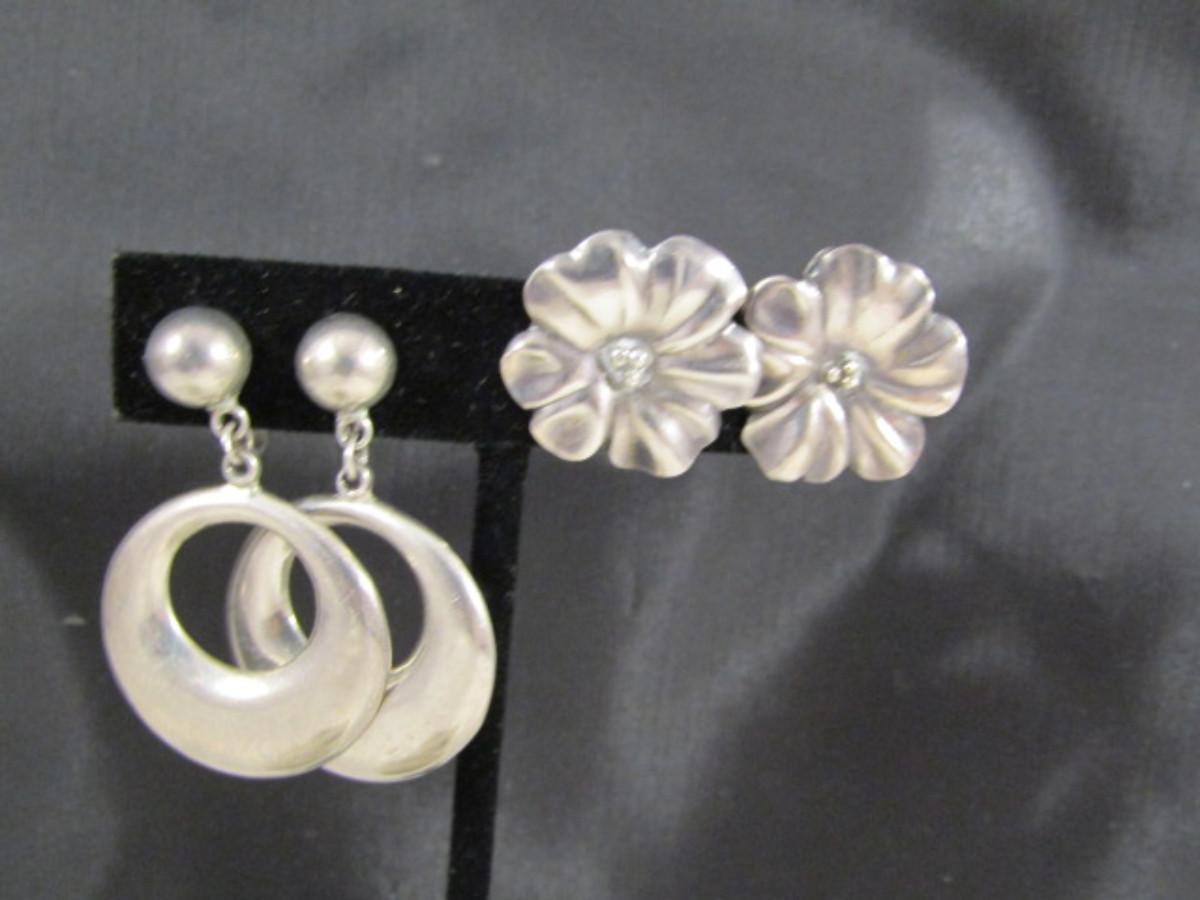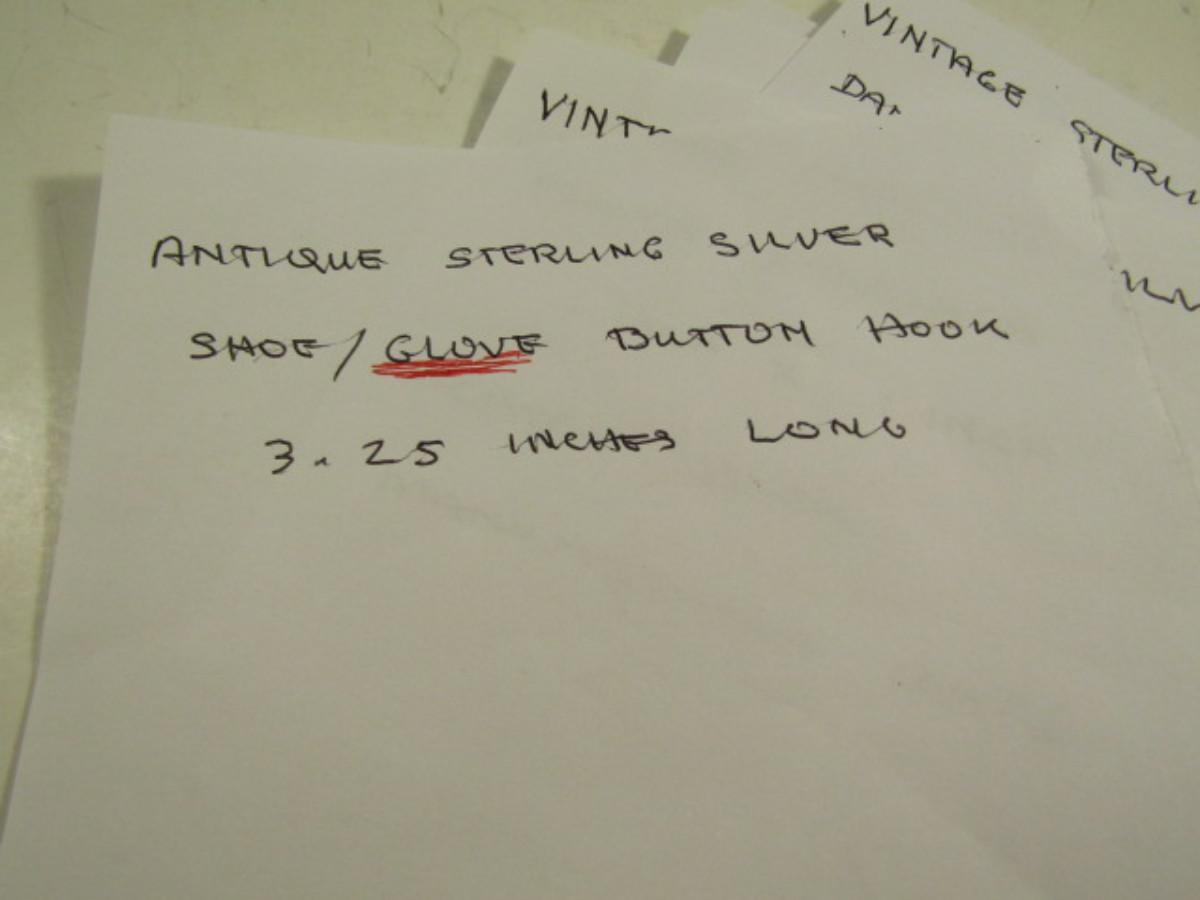 Assorted Sterling Silver Accessories- Earrings, Pin, Glove Button Hook, and Collar Pin- Approx 23.3 Grams (#23). Earrings are screw-back.