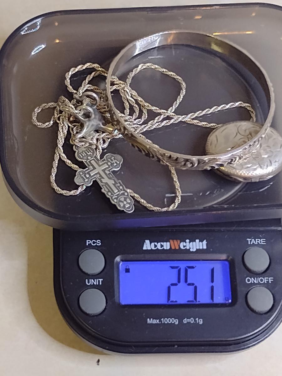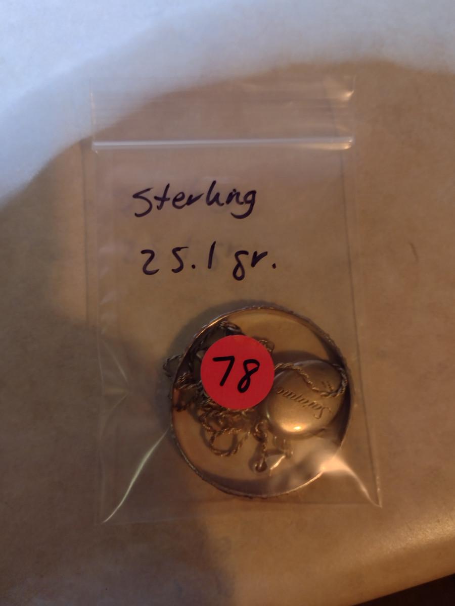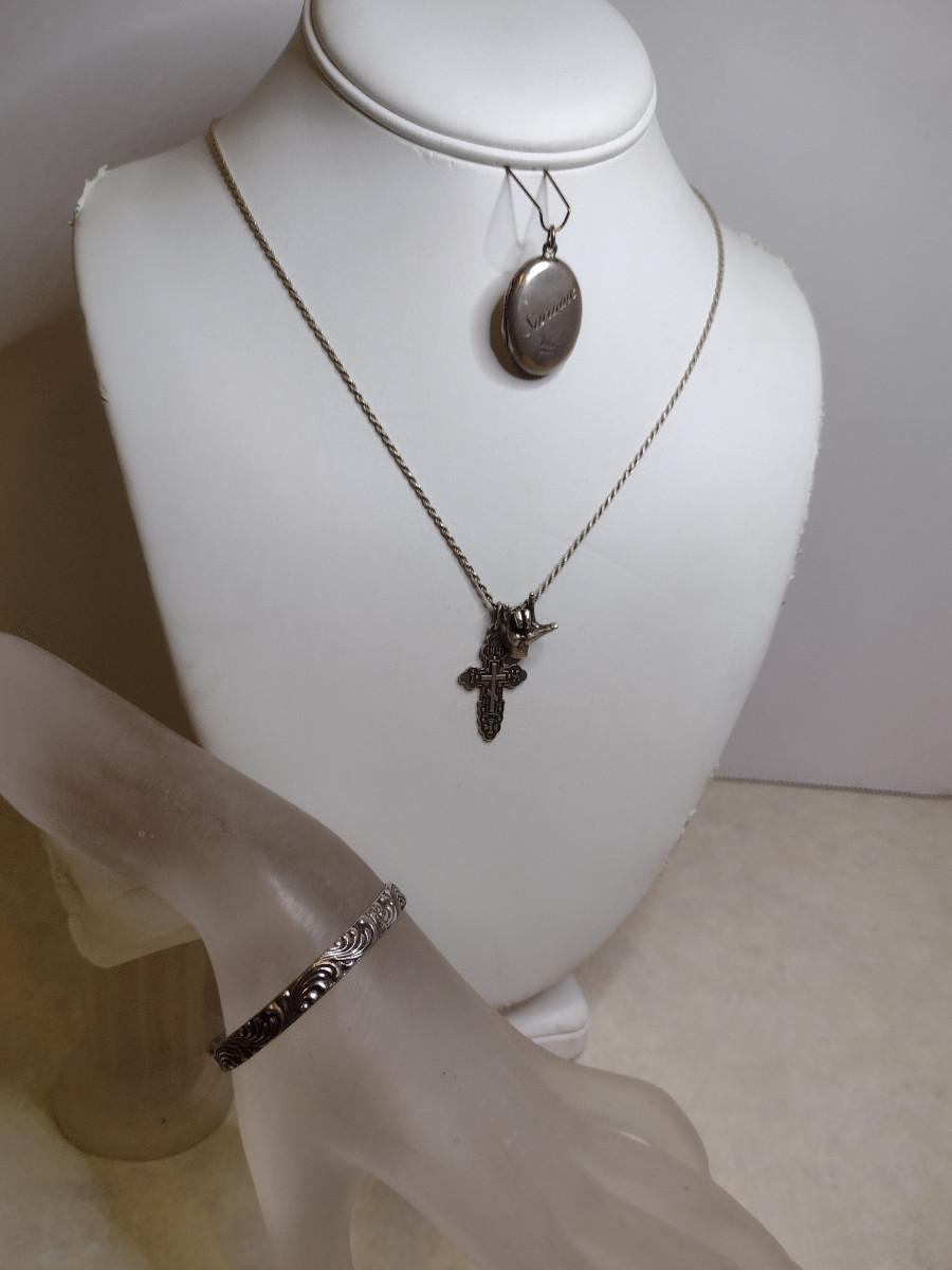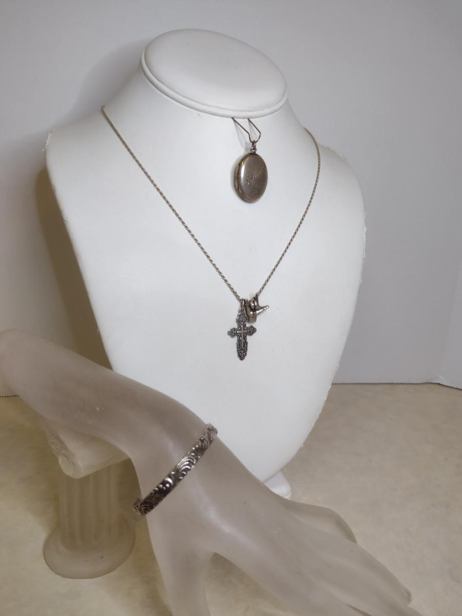 Assorted Sterling Silver Jewelry- Approx Total Weight 25.1 Grams (#78). Necklace with pendants, locket, and baby bangle.