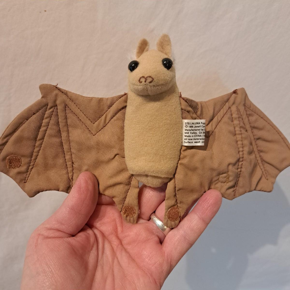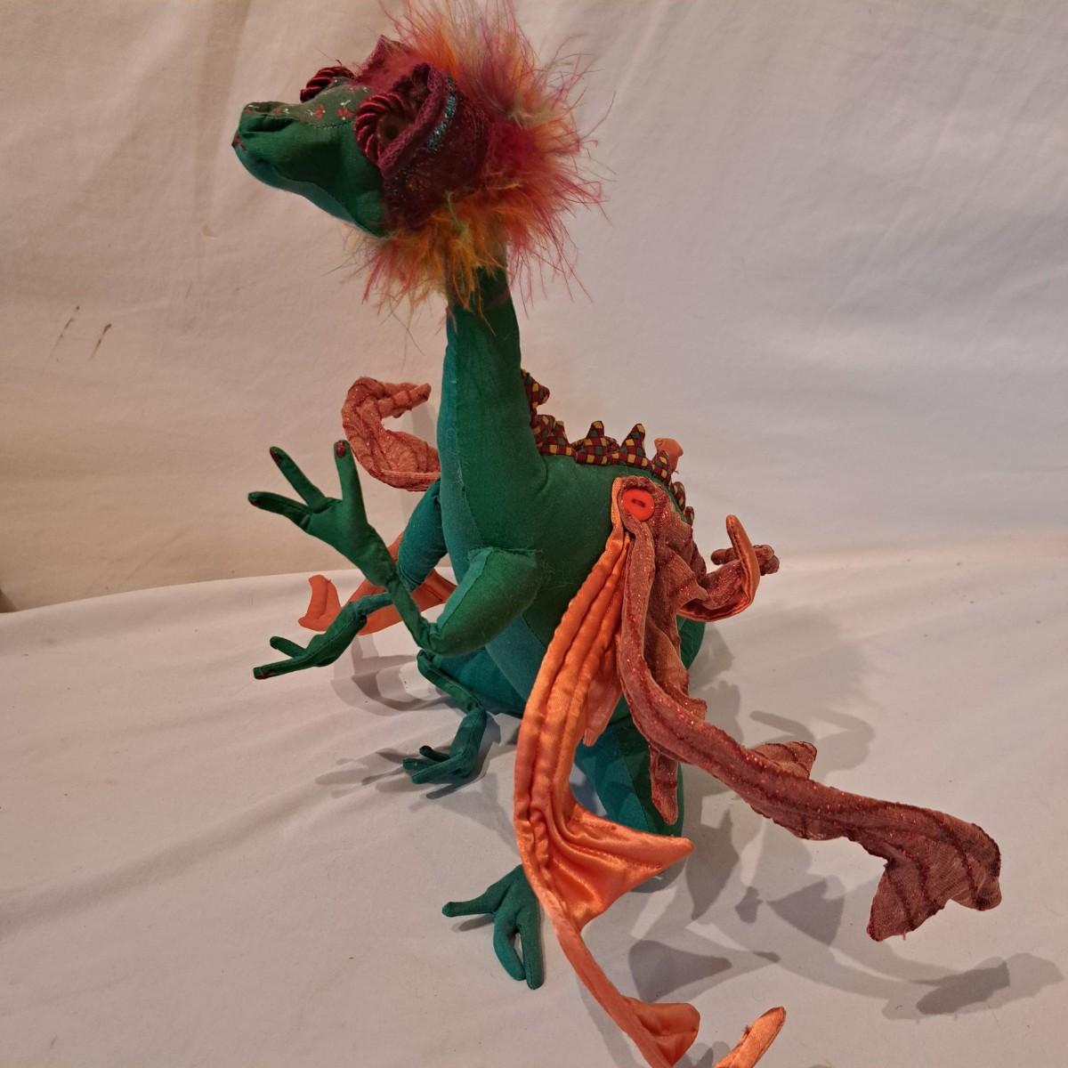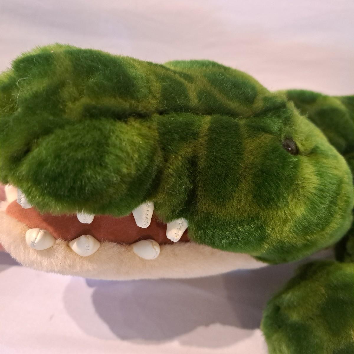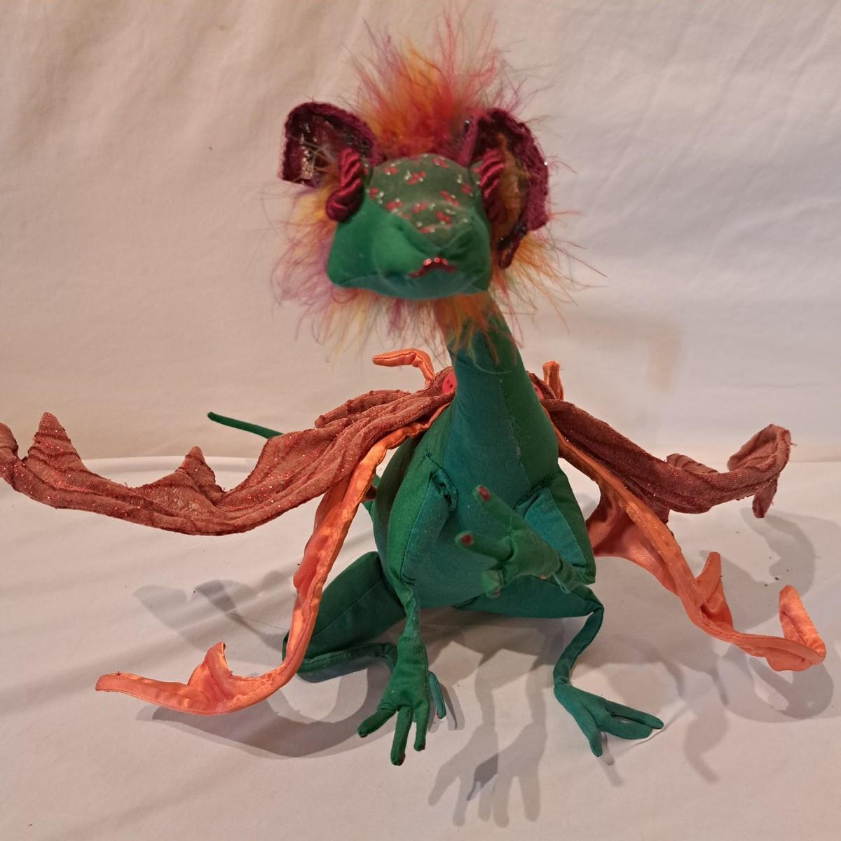 A mix of ten stuffed animals and hand puppets! The lizard, turtle, pink bunny, Stella Luna bat and faux leather bumble bee are hand/finger puppets ranging in size from 3" in length (bumble bee) to a lizard 18" in length. The others include an alligator 20"in length, the three bears range from 5"H to 10.5"H, plain stuffed animals. The hedgehog has a zip in its bottom that reveals a baby hedgehog hidden inside! The 12"H beautiful dragon with feathery retro hair, pearl button eyes and fancy orange wings appears to be hand-made and has movable internal wires for different poses. Please see photos of tags for toy makers. Shipping available.