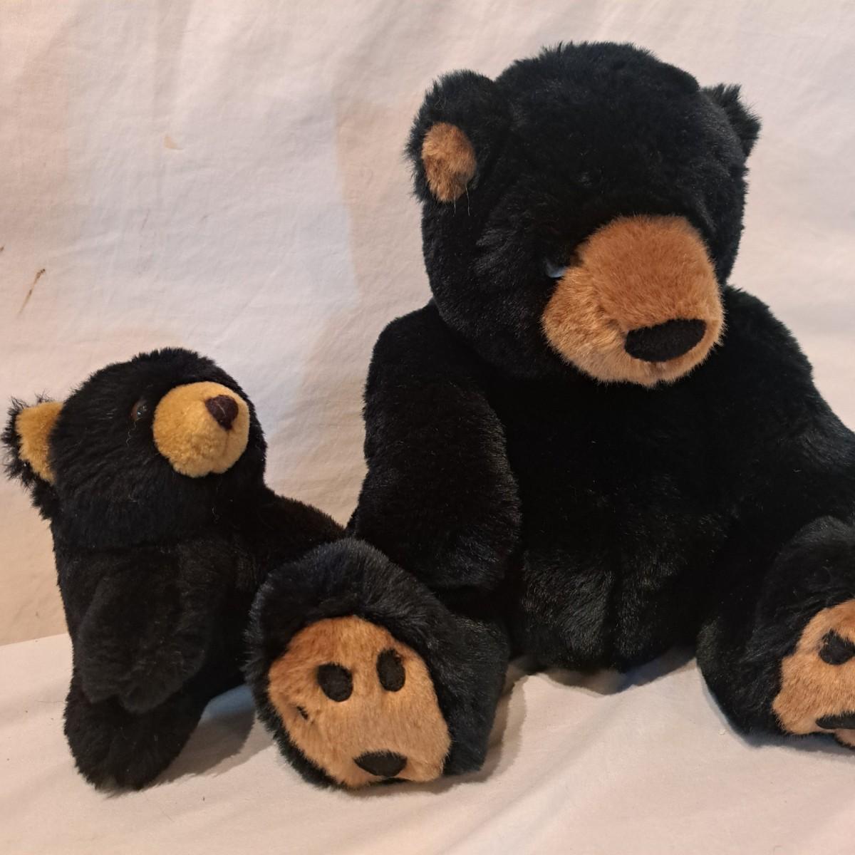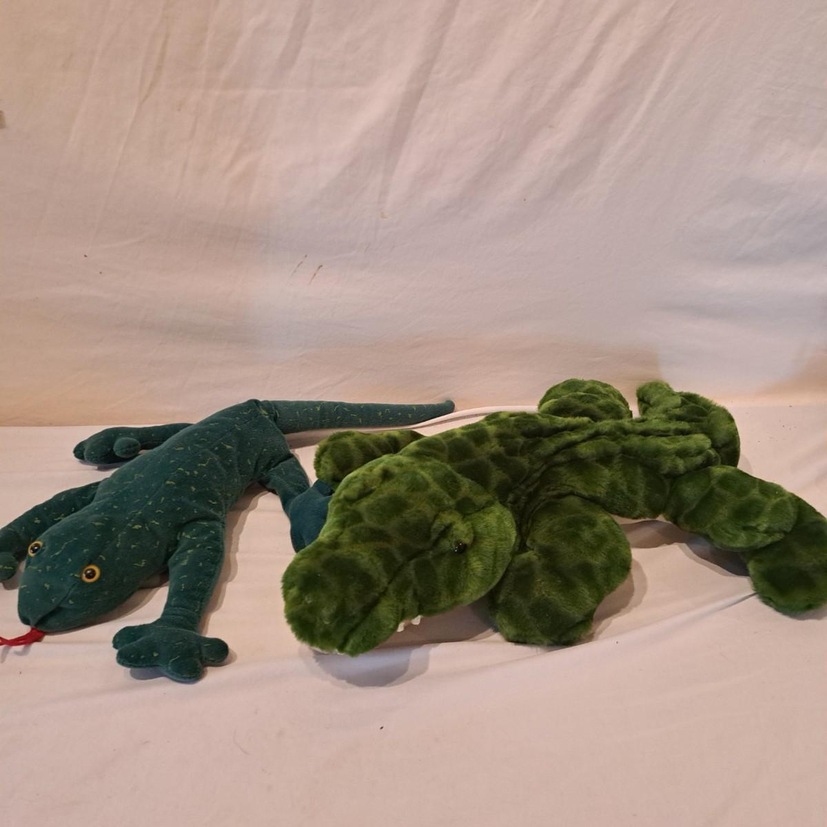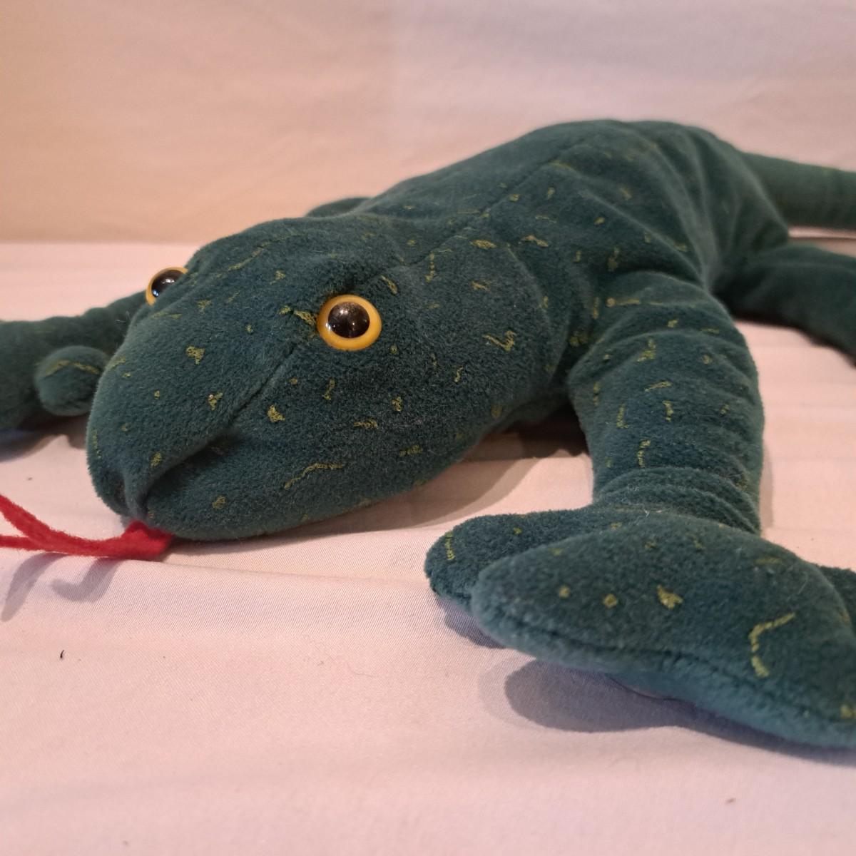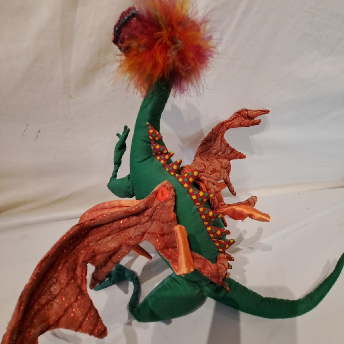 A mix of ten stuffed animals and hand puppets! The lizard, turtle, pink bunny, Stella Luna bat and faux leather bumble bee are hand/finger puppets ranging in size from 3" in length (bumble bee) to a lizard 18" in length. The others include an alligator 20"in length, the three bears range from 5"H to 10.5"H, plain stuffed animals. The hedgehog has a zip in its bottom that reveals a baby hedgehog hidden inside! The 12"H beautiful dragon with feathery retro hair, pearl button eyes and fancy orange wings appears to be hand-made and has movable internal wires for different poses. Please see photos of tags for toy makers. Shipping available.