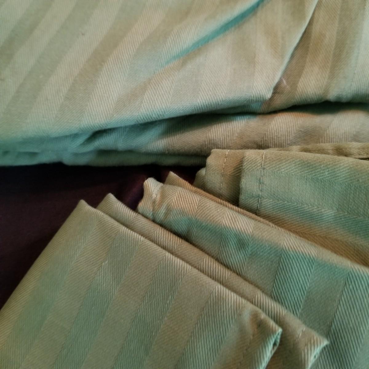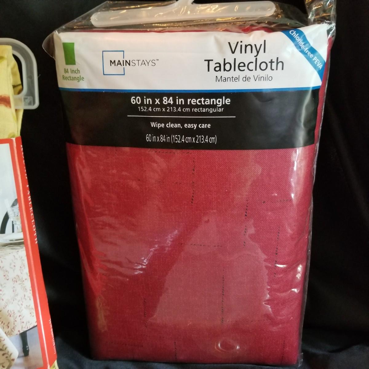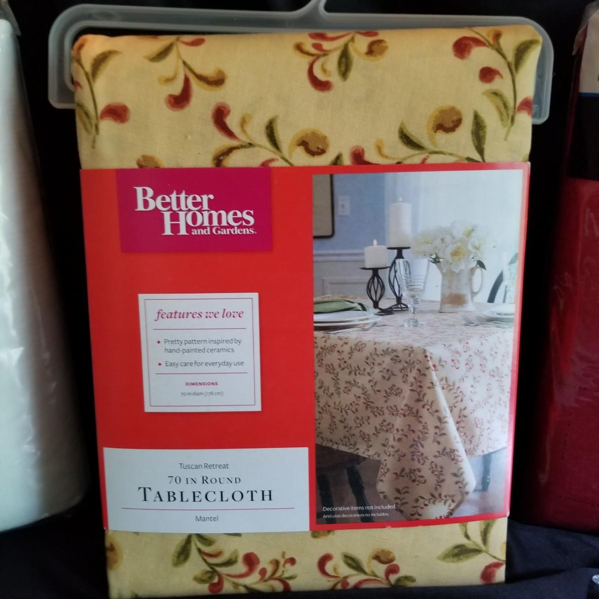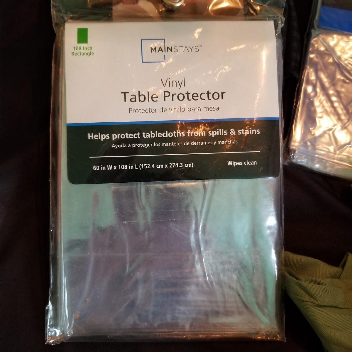 A mix of tablecloths, pad, and protective covers as well as cloth napkins. 70" round dark green tablecloth with eight matching napkins, 18" square. Also five plain green napkins, same size. Seven white polyester napkins, 18" square. Seven items shown in packages are new, see photos for sizes. Other items gently used. Shipping available.