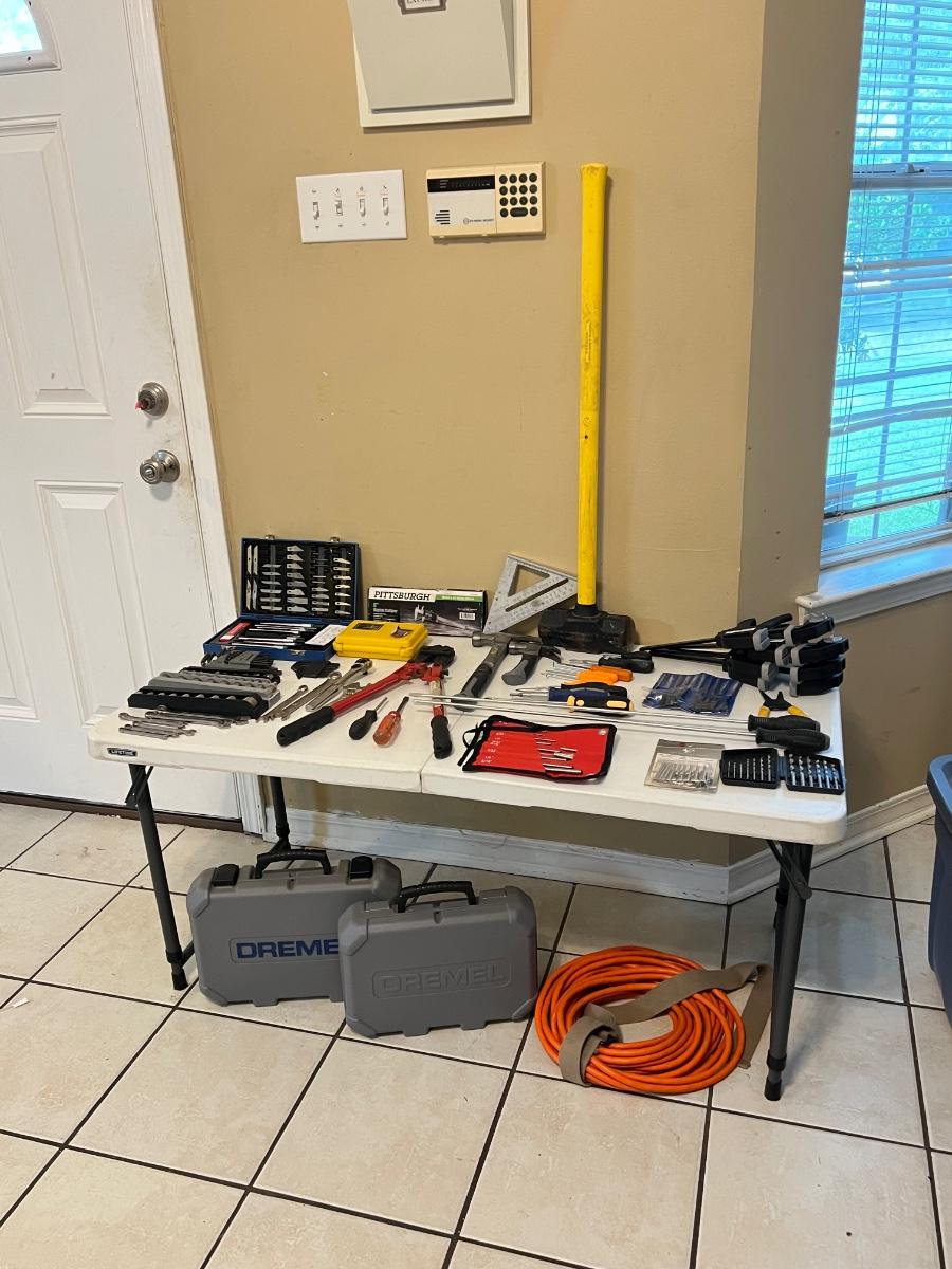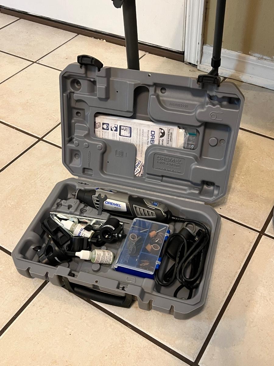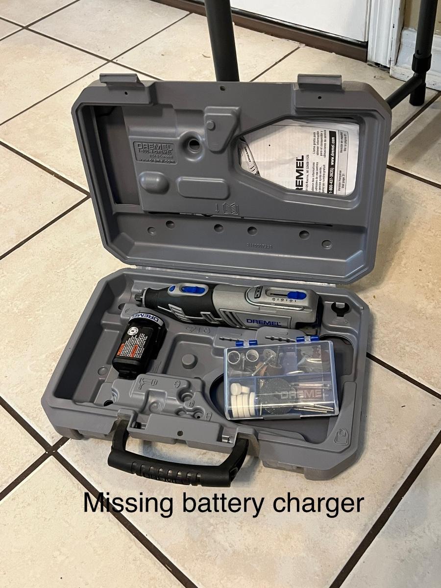 Extension cord is 50FT ~ See photos for what’s included ~ Battery powered DREMEL is missing the charger