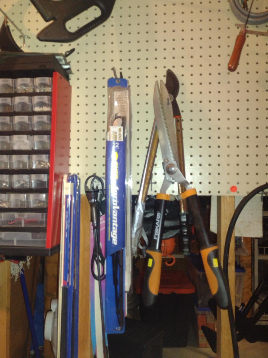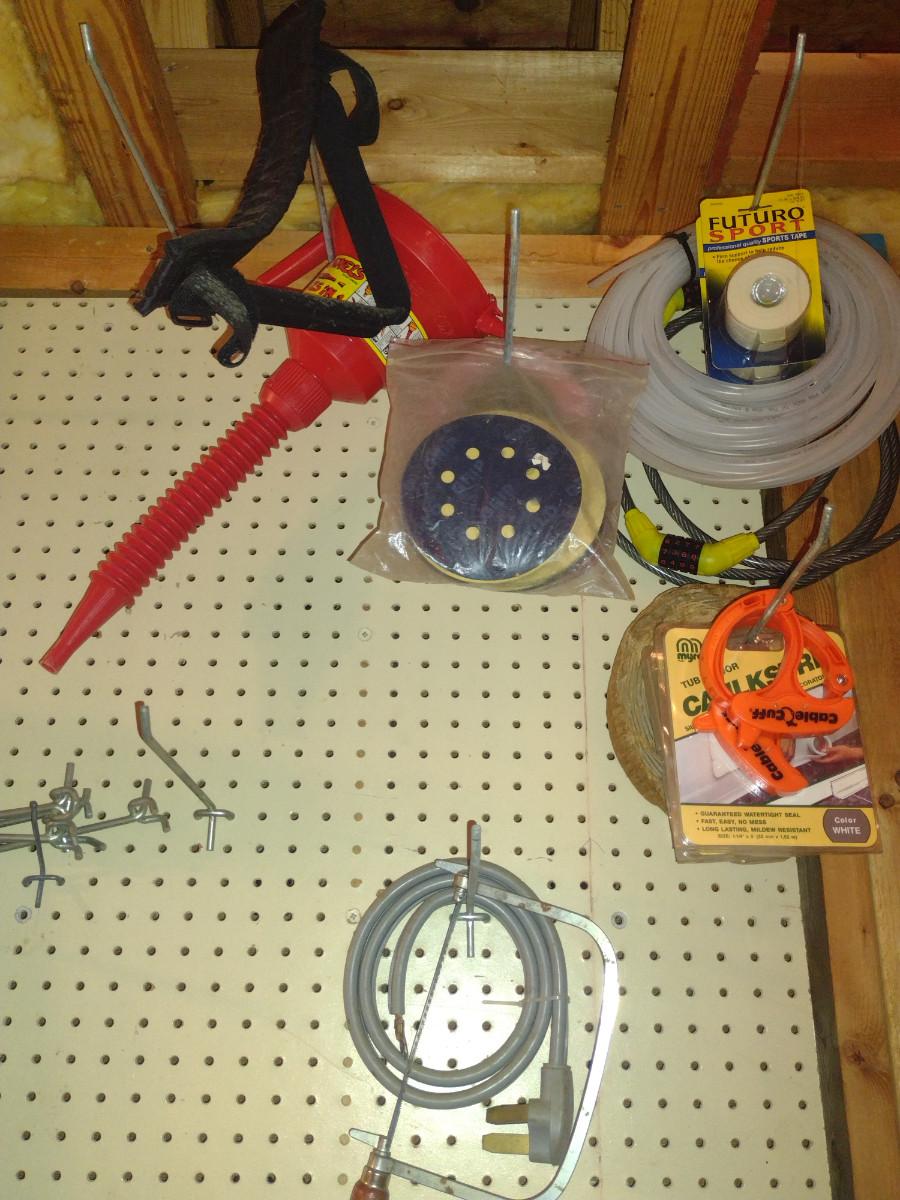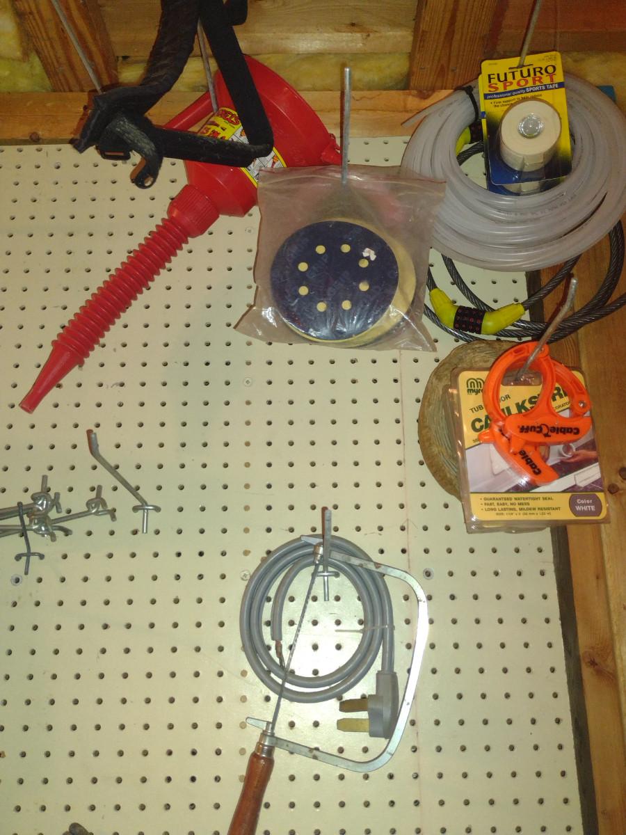 Assorted Tools and Automotive Accessories- Contents on Pegboard. Please see all pictures for selection.