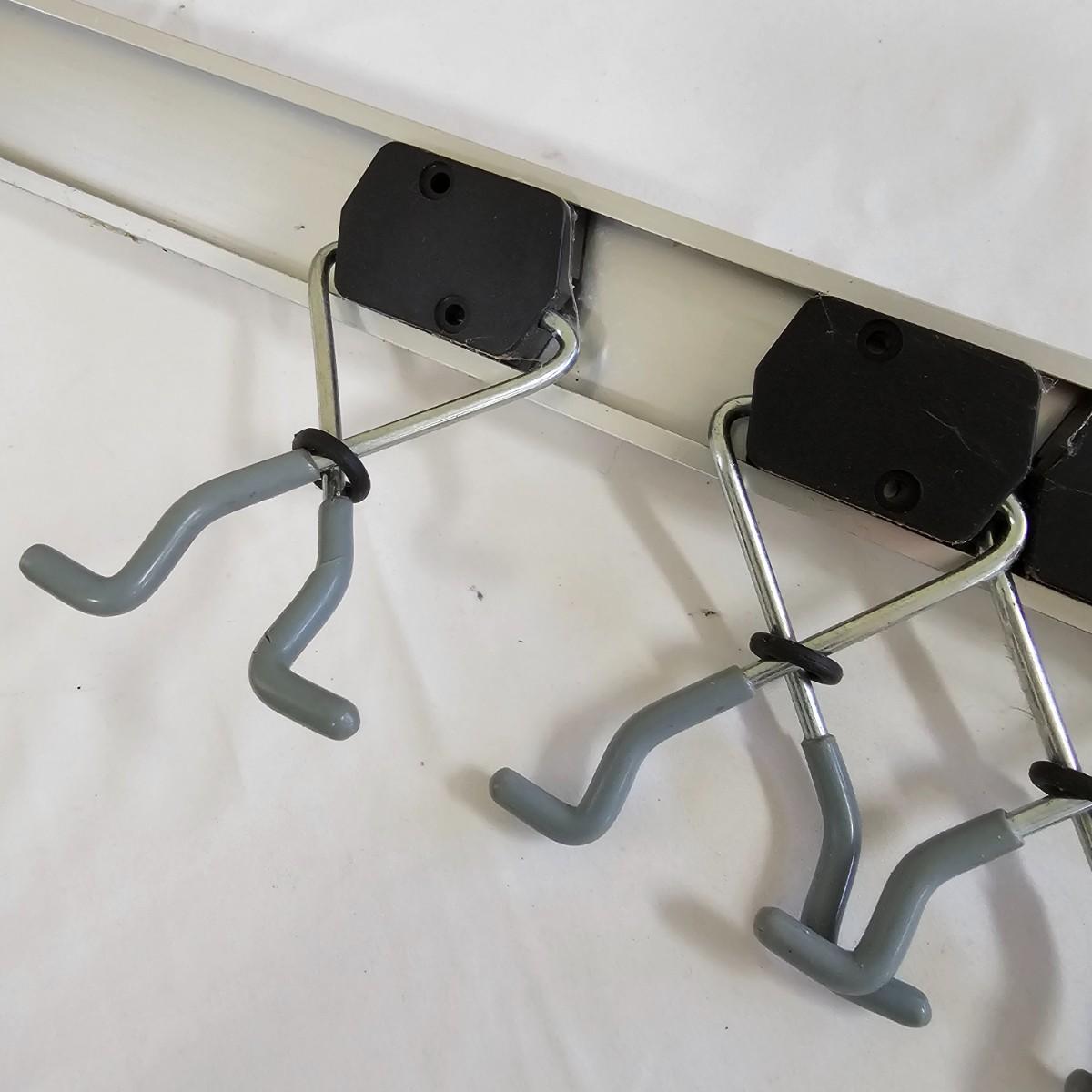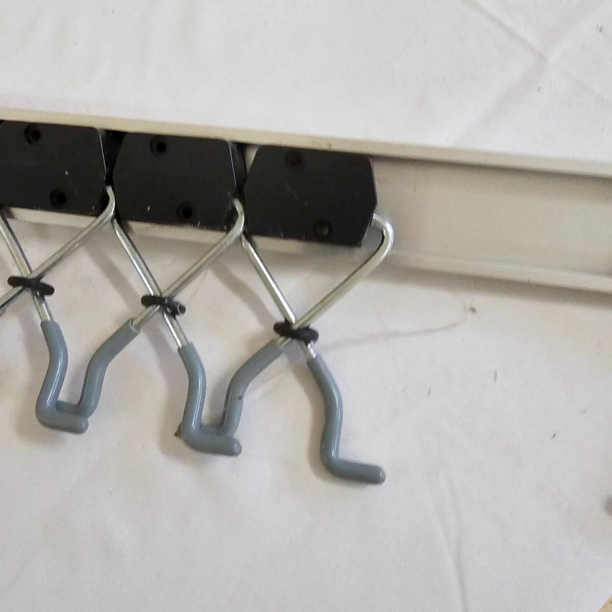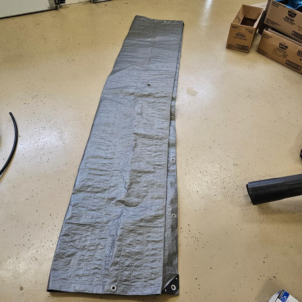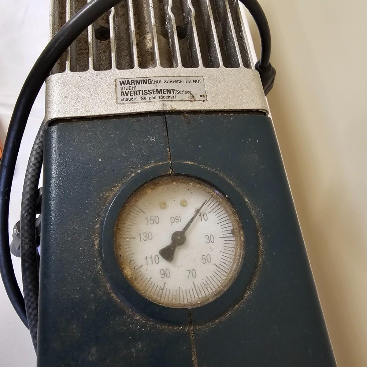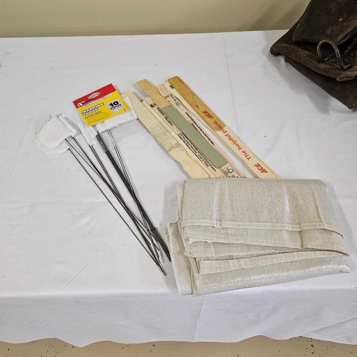 Small hand tools, some paint items, clamps, portable air compressor. One Black & Decker air station portable compressor. One portable halogen work light with stand. A Black & Decker electric jigsaw. Paint trays, stir sticks, three bar clamps, 20", 36", and 40" long. A wall rack to hang tools on. One 92" x 116" tarp, small holes. All electrical items powered on when plugged in. See photos for details. Local pickup only.