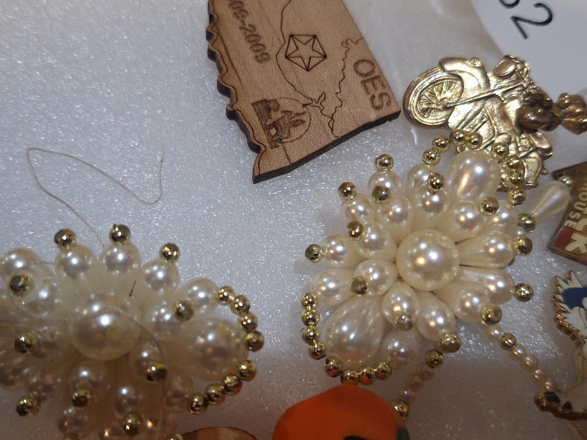 assorted vintage and estate brooches, mis matched earrings and other jewelry pieces- some may be broken