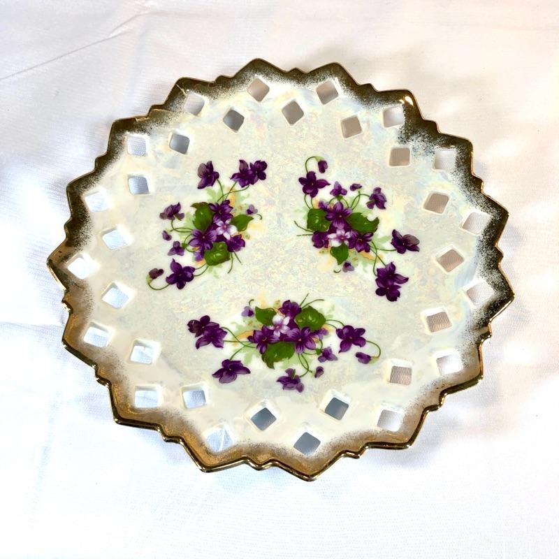 Henrich (H & Co): 7.75" plate, Bavaria, hand painted, gold rim & accents, small chip/crack on underside of rim (shown in photos)