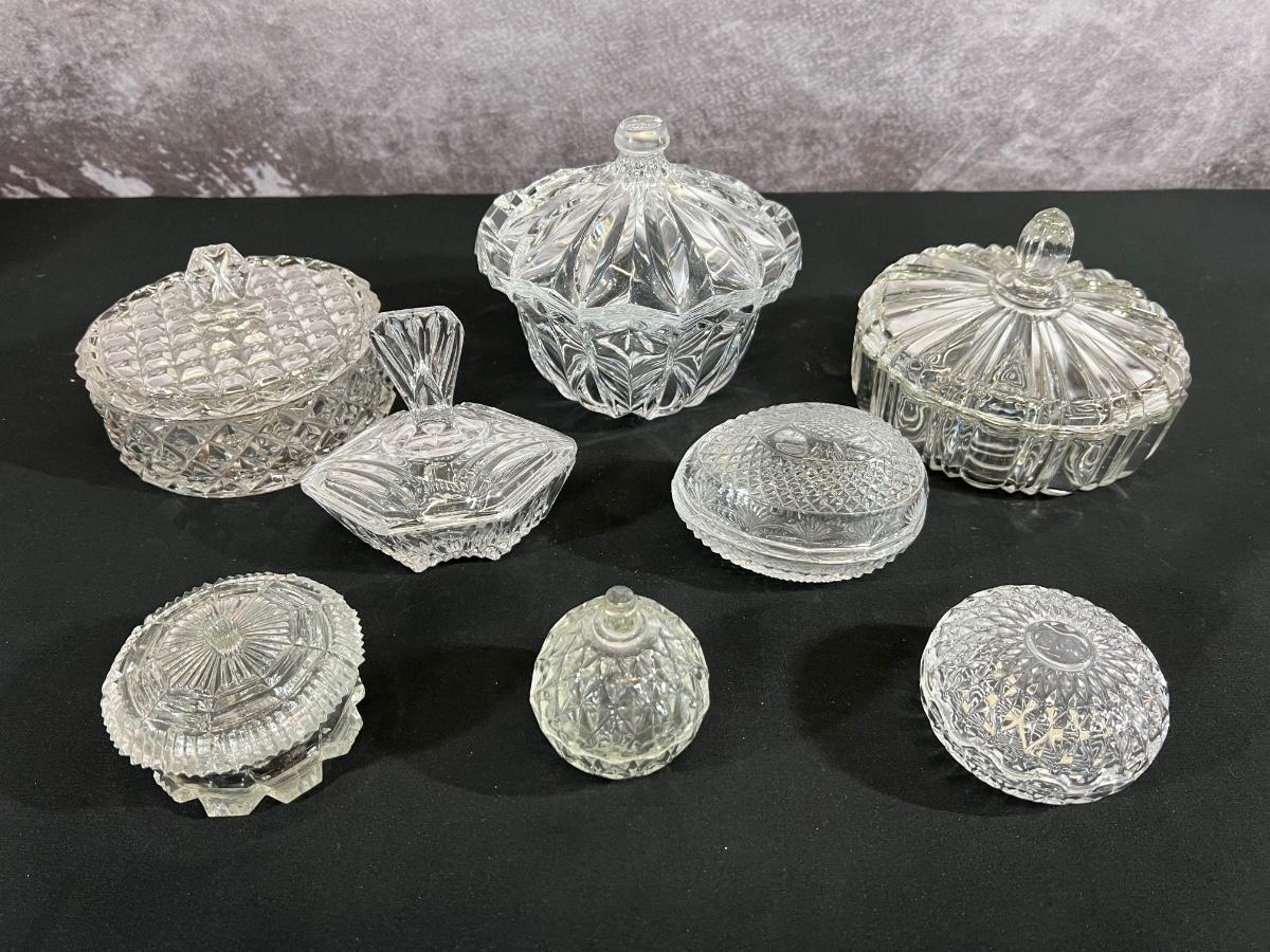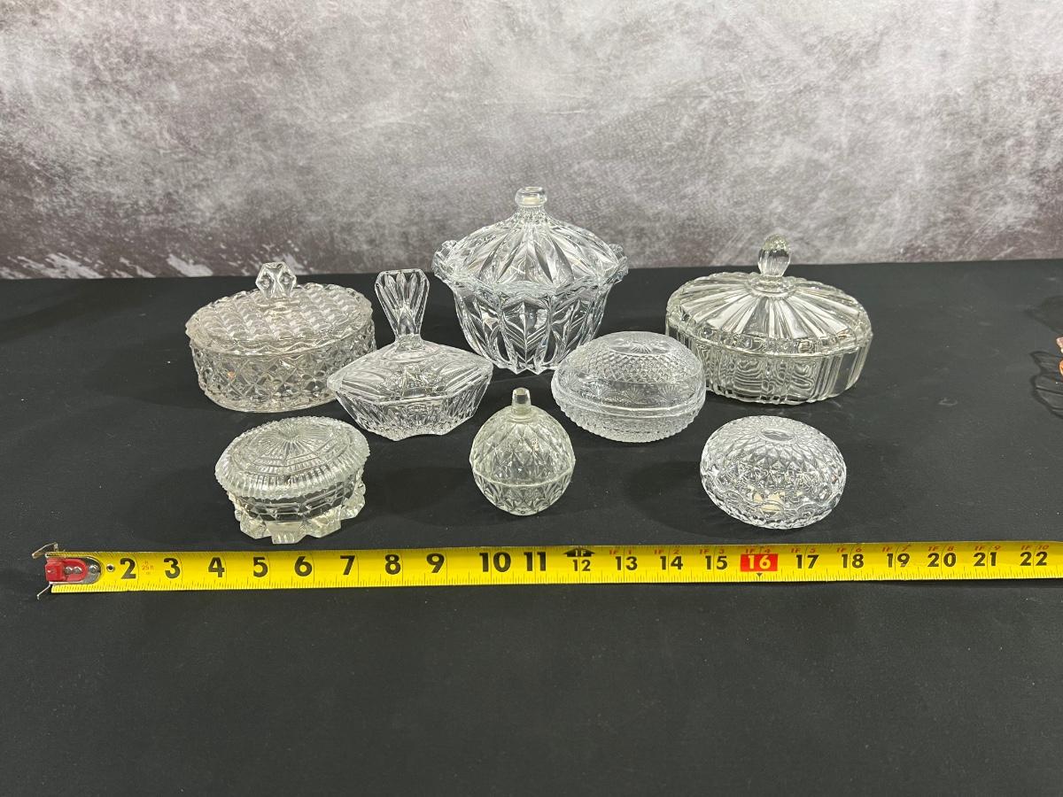 Assorted Vintage Glass Candy Dishes and trinket boxes