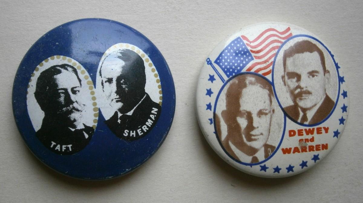 Assorted Vintage Pinback Buttons and GOP Elephant Pin from the early to mid 1900's.