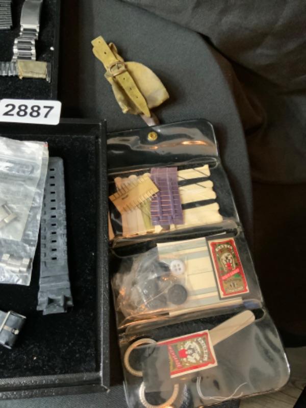 Assorted watch bands and vintage sewing kit lot 2887