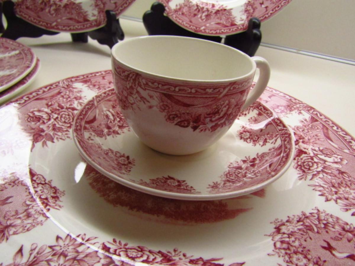 Assorted Wedgwood Salem College (Winston-Salem, NC) Dinnerware. 7 dinner plates and one cup with saucer.
