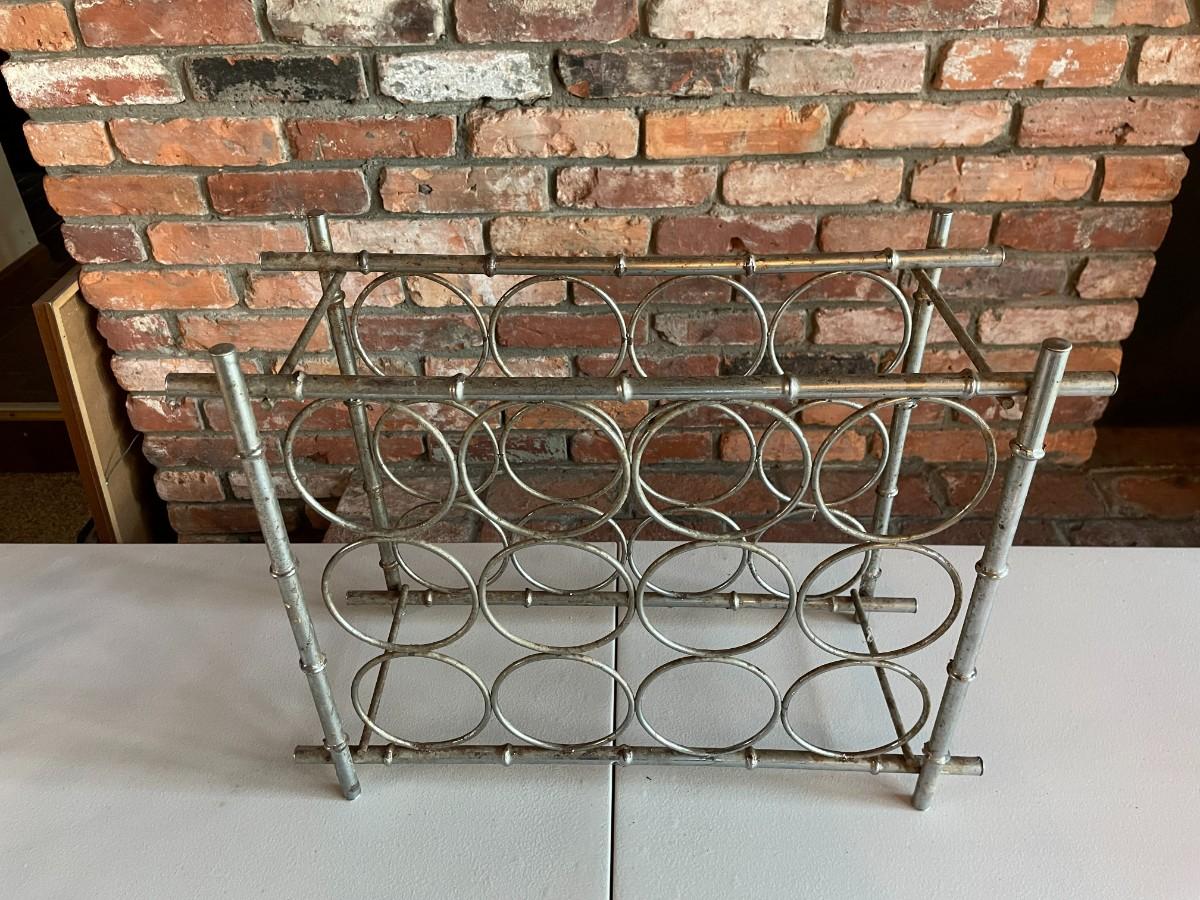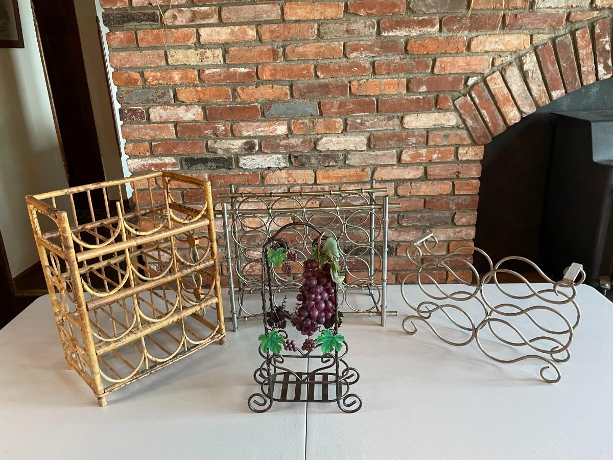 Lot includes 4 wine racks offered in bamboo and medal. Largest wine rack is 20L x 8w x 15h.