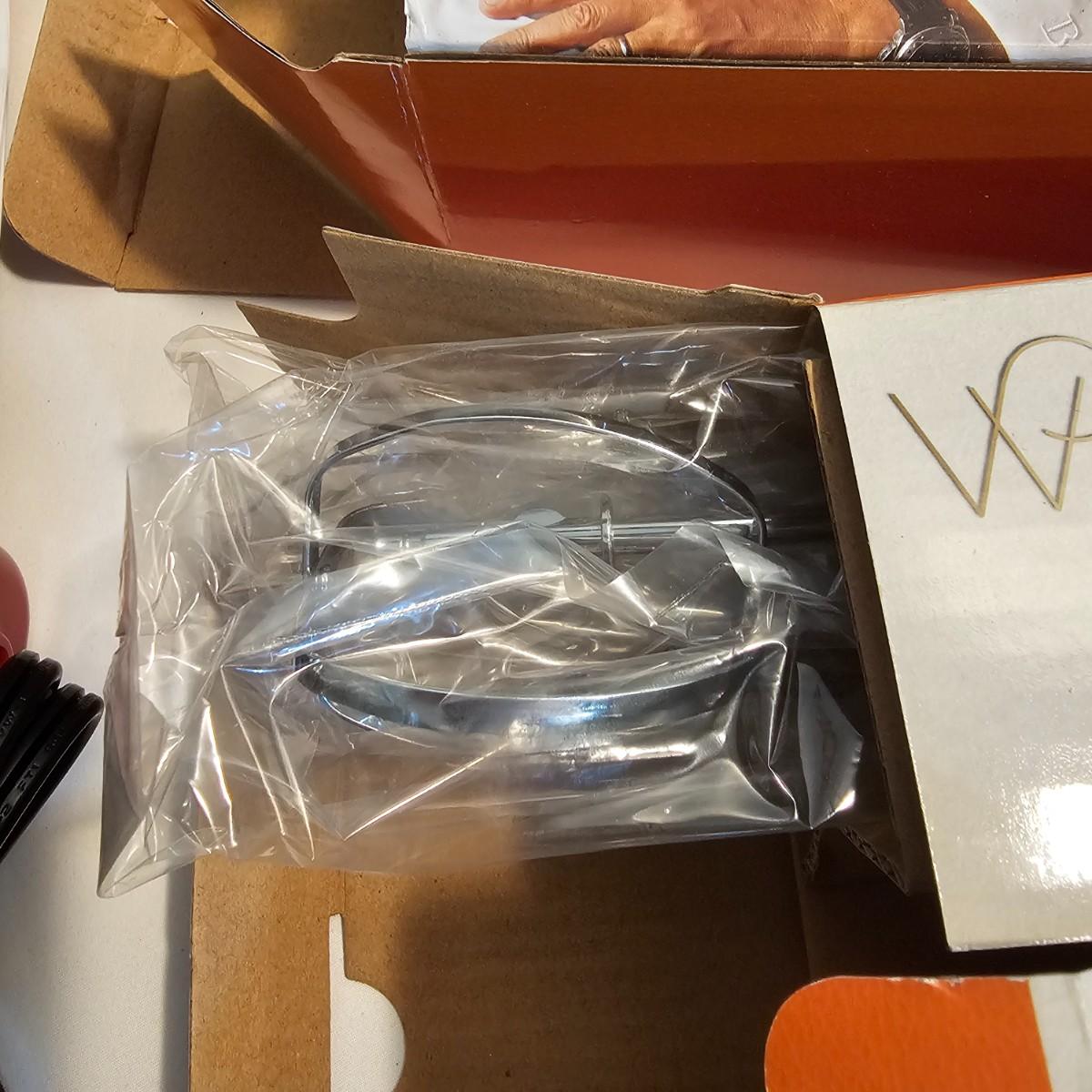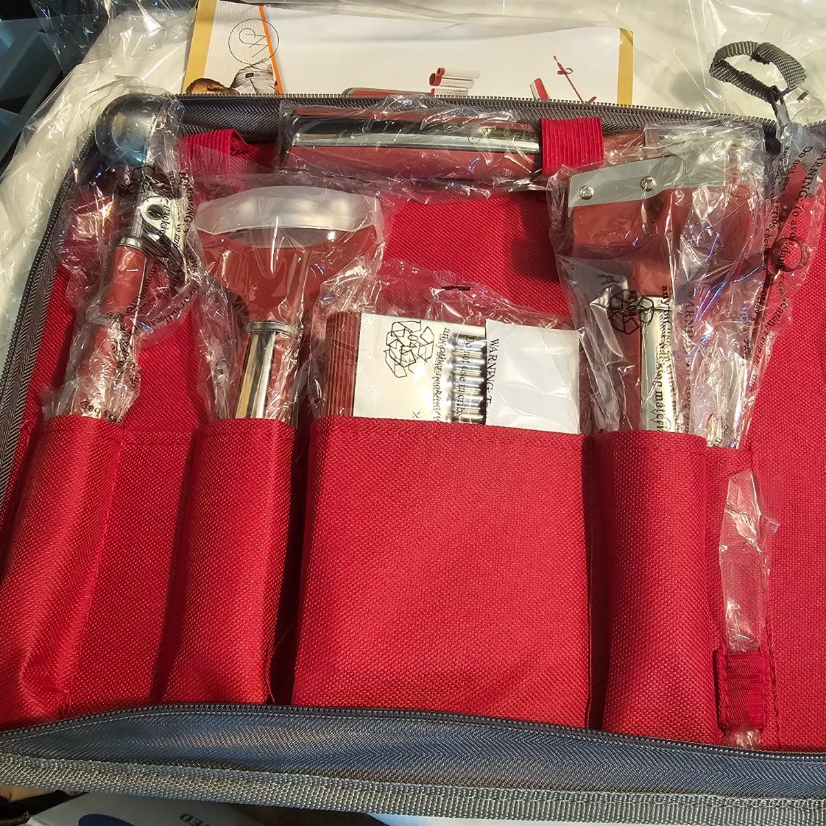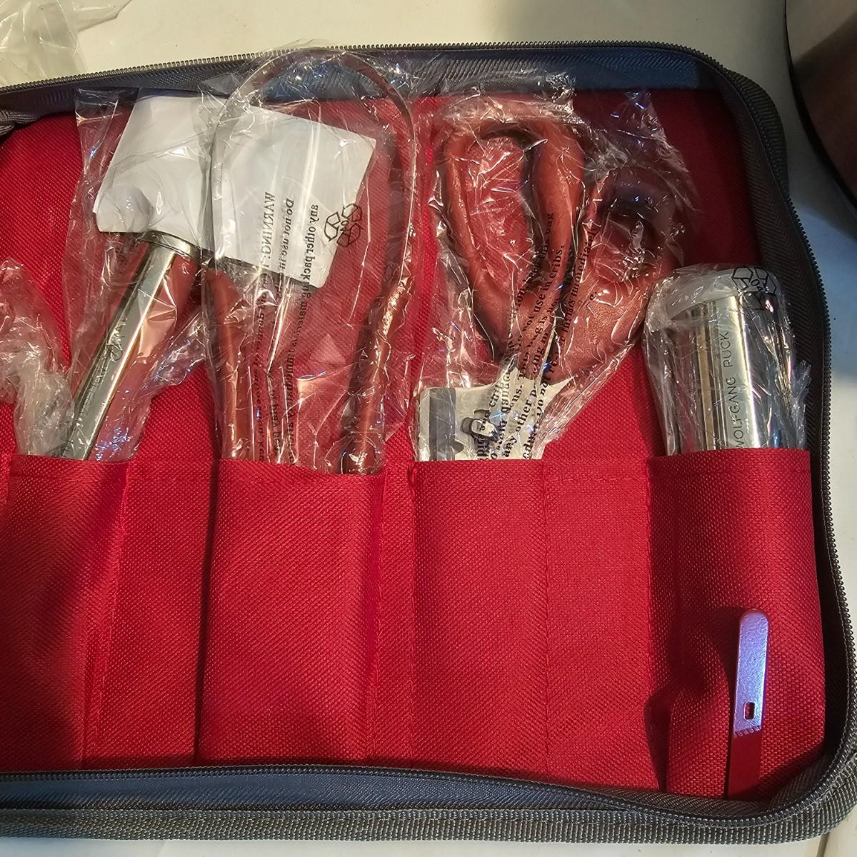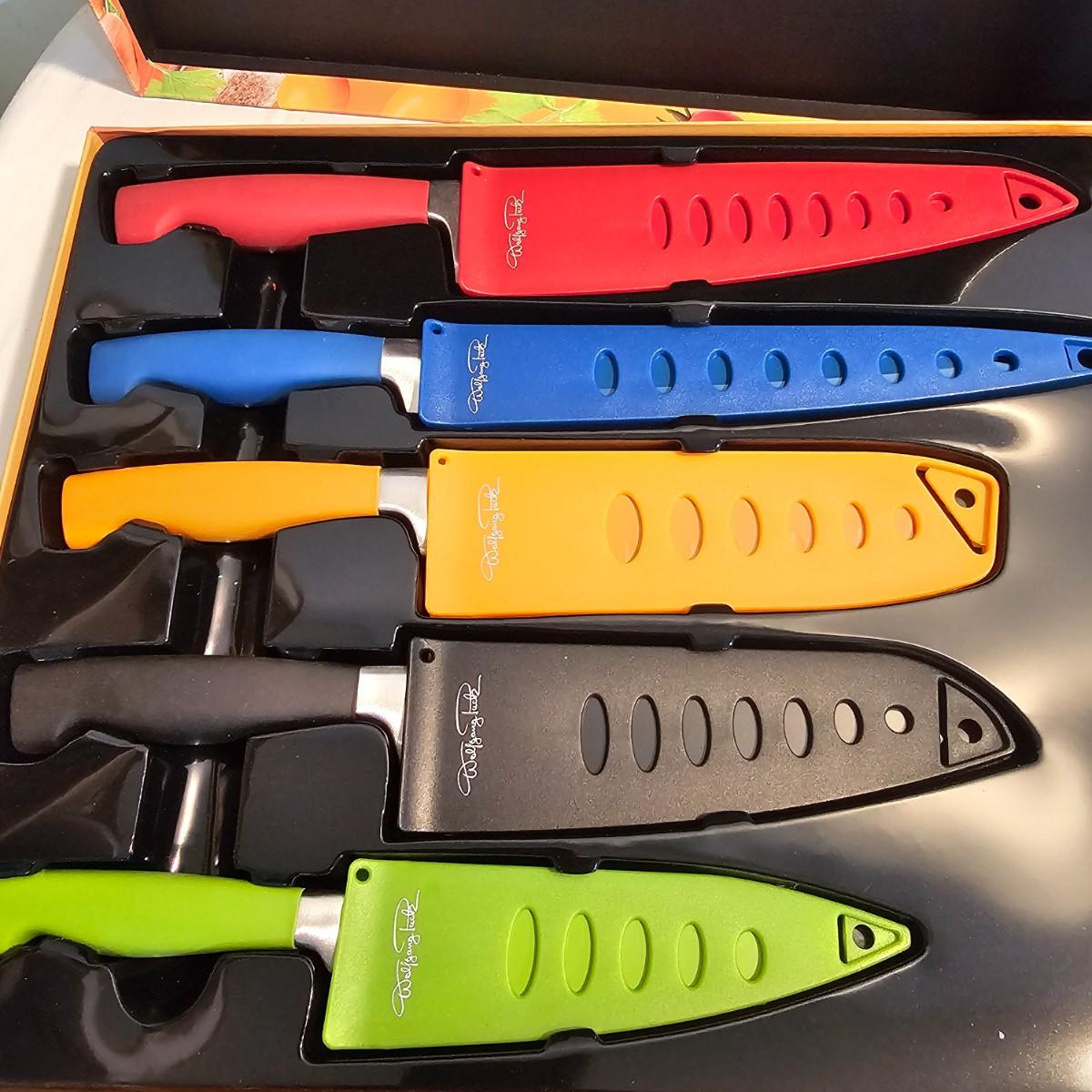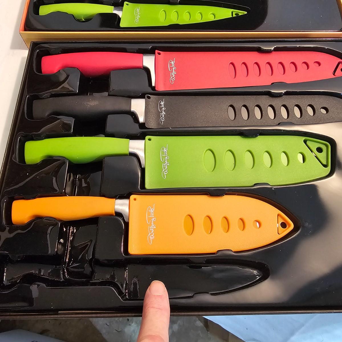 Everything in this lot is by Wolfgang Puck. Rice cooker, pie maker, and mini food processor are all electric. One garnishing set and ultimate kitchen tool set, NIB. Two boxes of knives, with one knife missing. Two stainless adjustable spice mills and two electric "Twist & Mix". Some small utensils and a knife sharpener. All electric items powered on when plugged in. See photos for details. Shipping available.