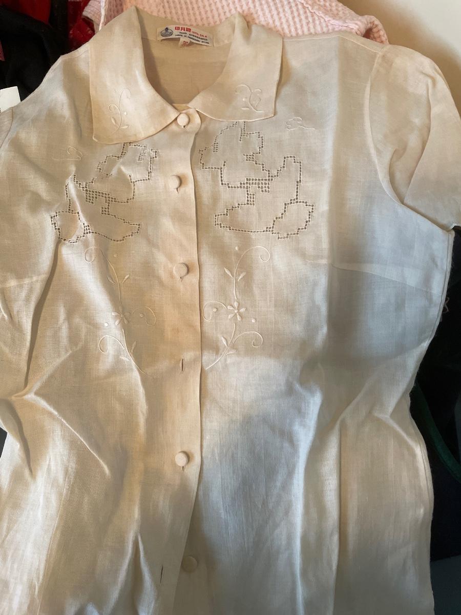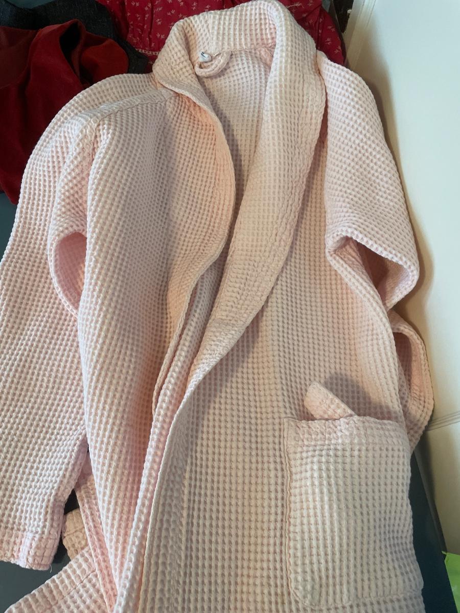 This assortment includes a bellora pink waffle weave bathrobe; hand embroidered made in China blouse