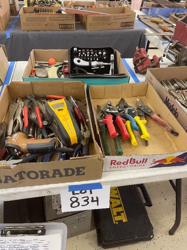 834-Assorted Wrenches, Pliers, Tin Cutters, etc.