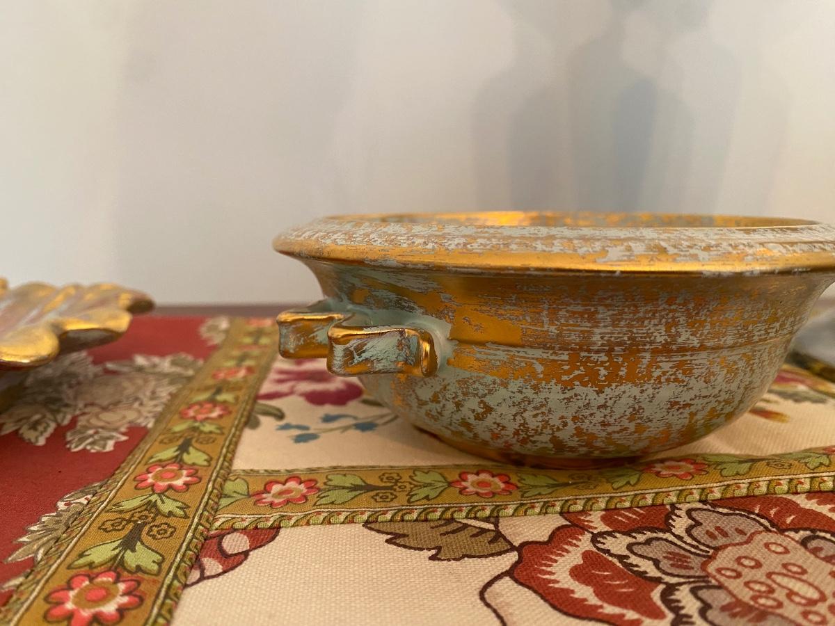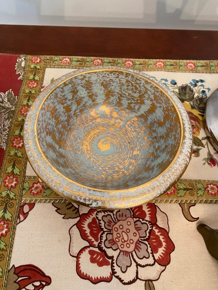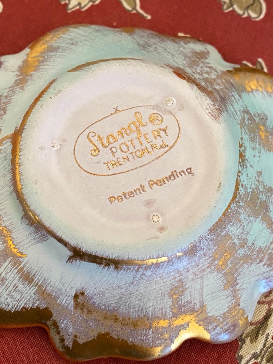 Vtg Hand Painted STANGL Pottery Antique Gold Blue # 4033 Trinket/candy Dish, and othr unmarked dish