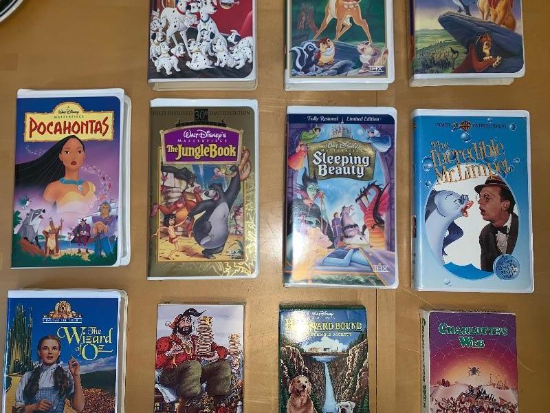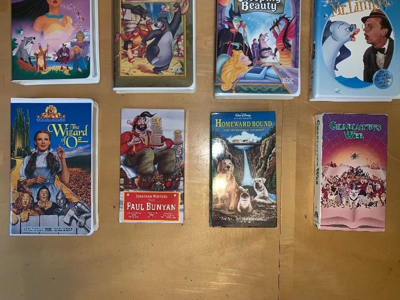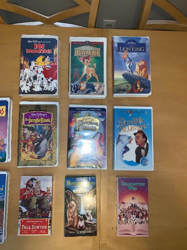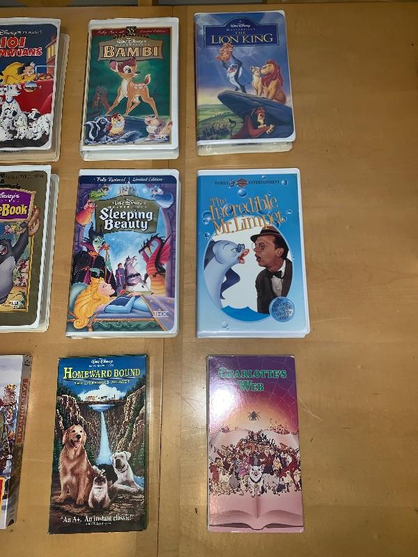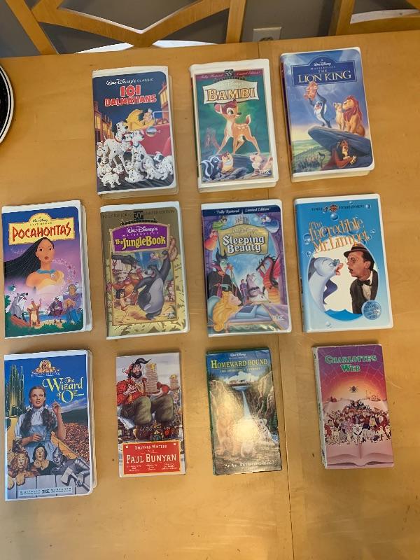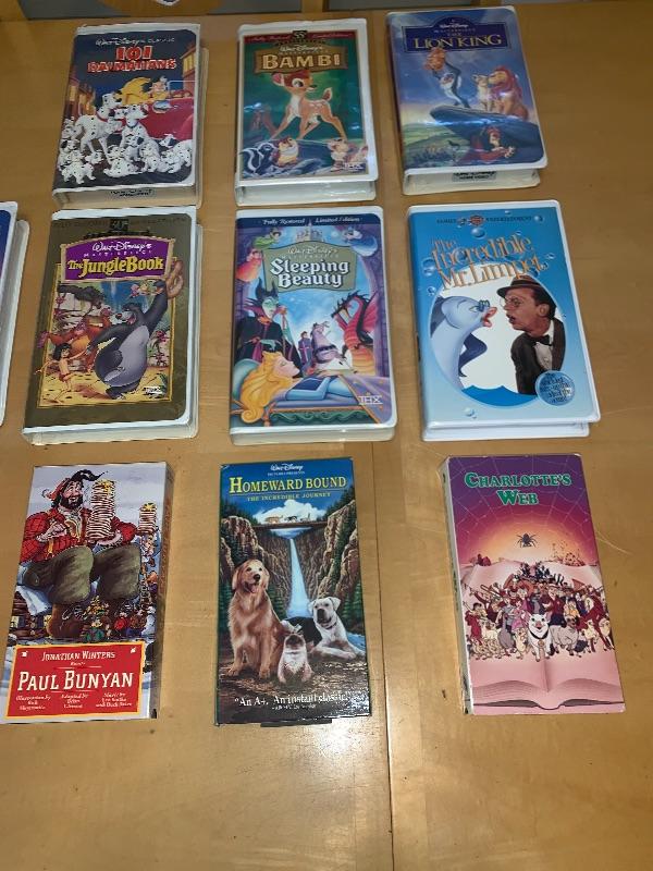 Here is an assortment of VZhS Tapes. These are in good condition. There are Walt Disney Tapes. The tapes are: 101 Dalmatians, Bambi, The Lion King, Pocahontus, The Jungle Book, Sleeping Beauty, The Incredibke Mr. Limpet, The Wizard if Is, Paul Bunyan, Honeward Bound and Charlotte’s Web.