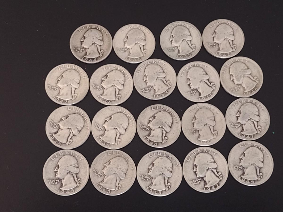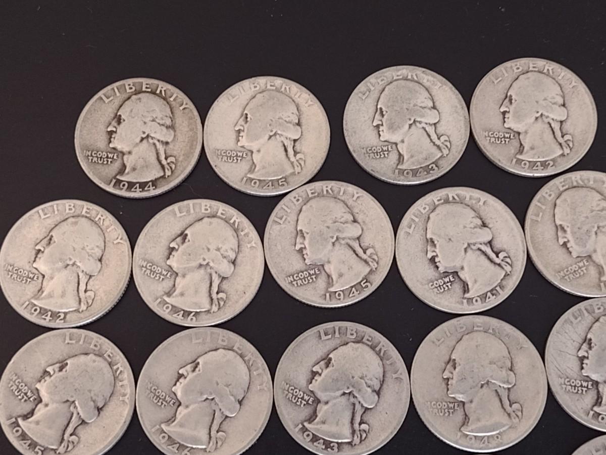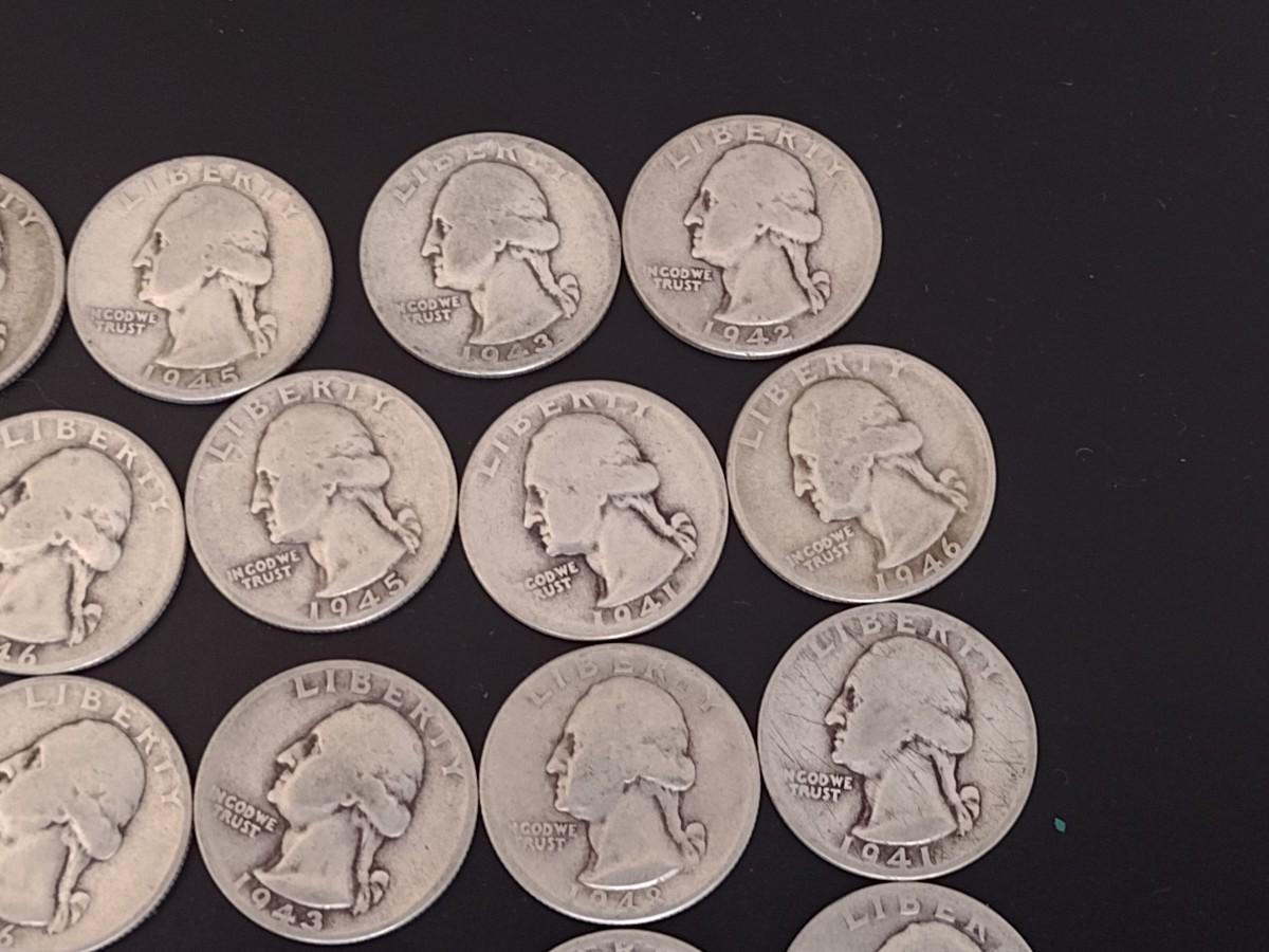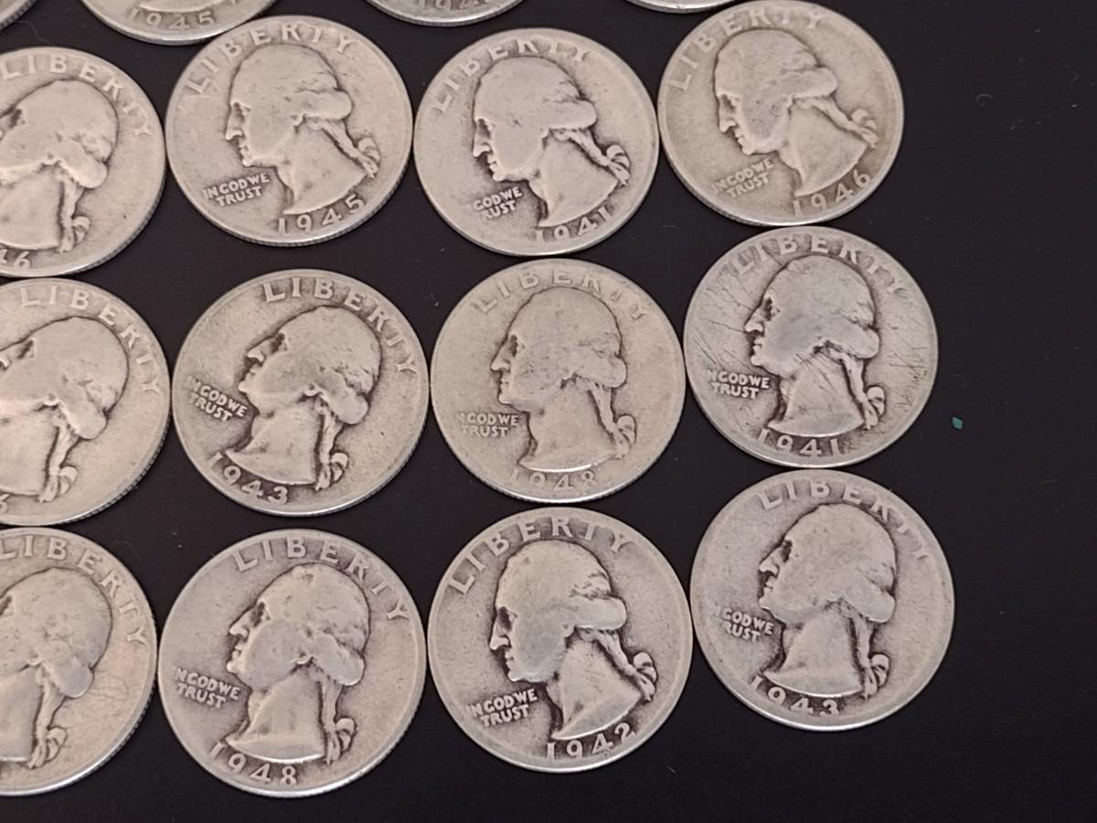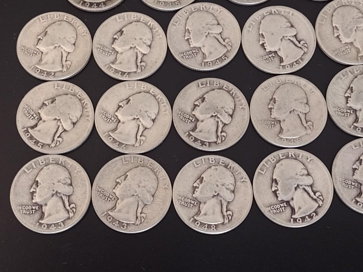Assortment of 1941-1949 U.S. Mint Washington Head Silver Quarters Circulated (#86)