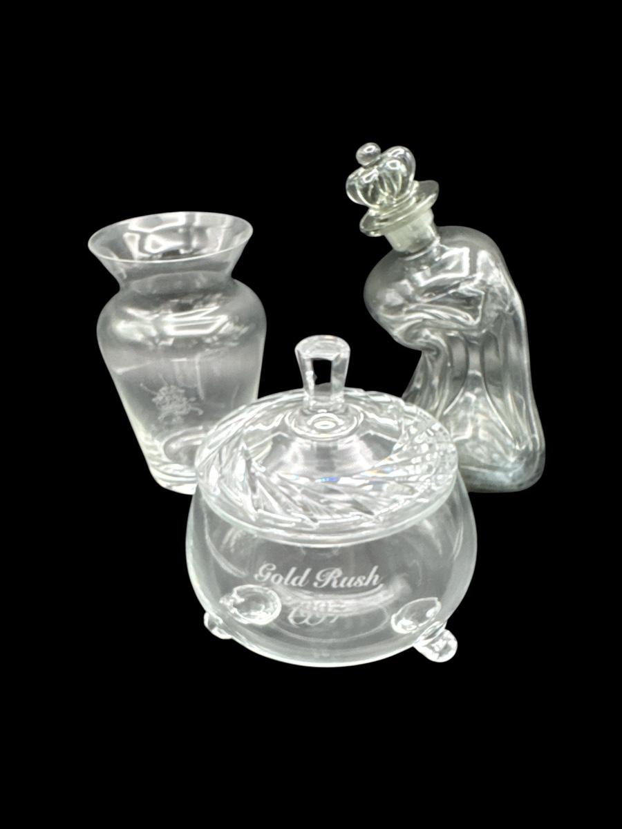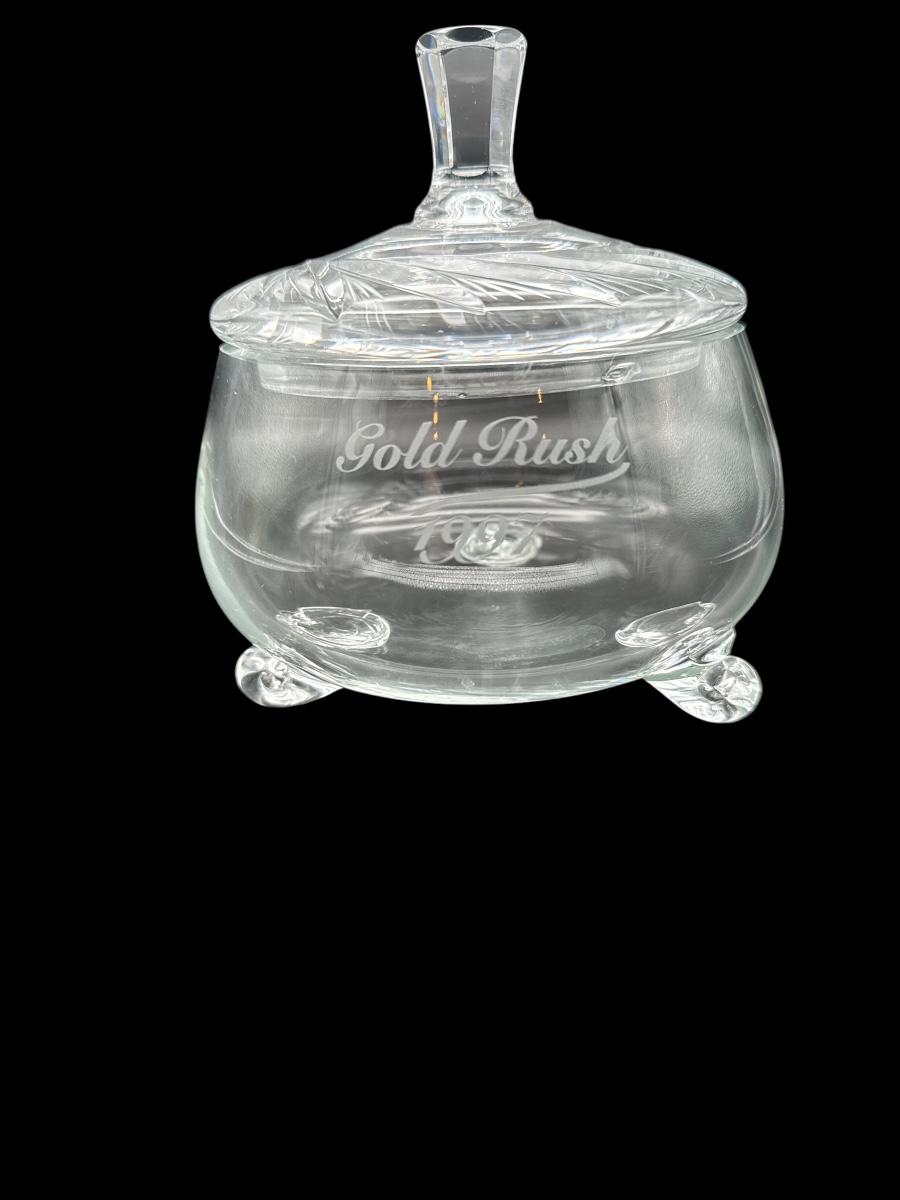 Glass bowl with lid “ Gold Rush” 1997etches on side