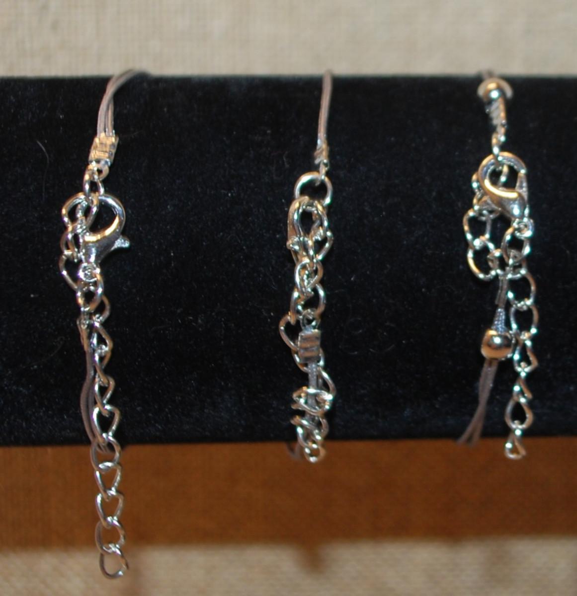 Assortment of 3 Rope Style Silver Tone Bracelets (6") with Lobster Clasps