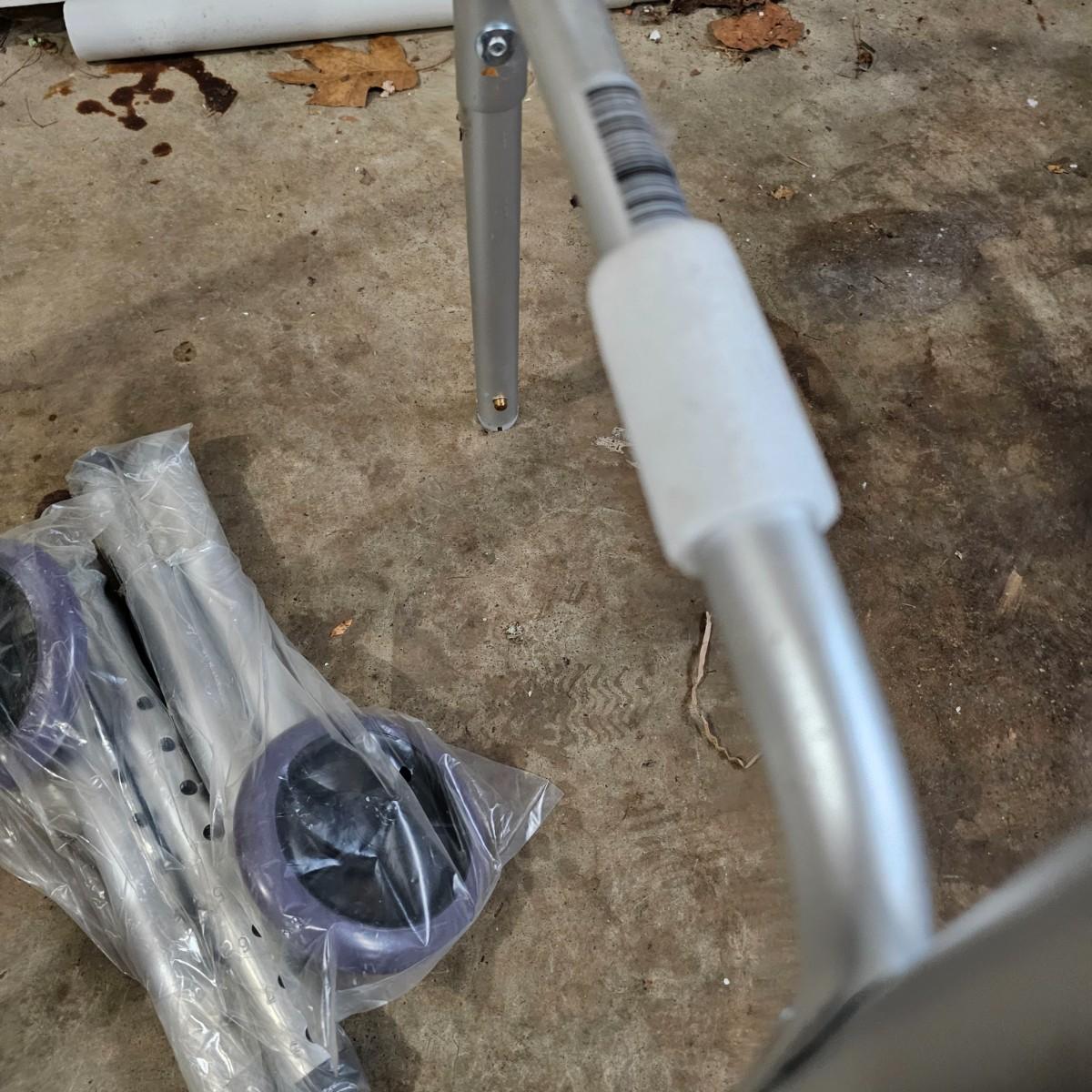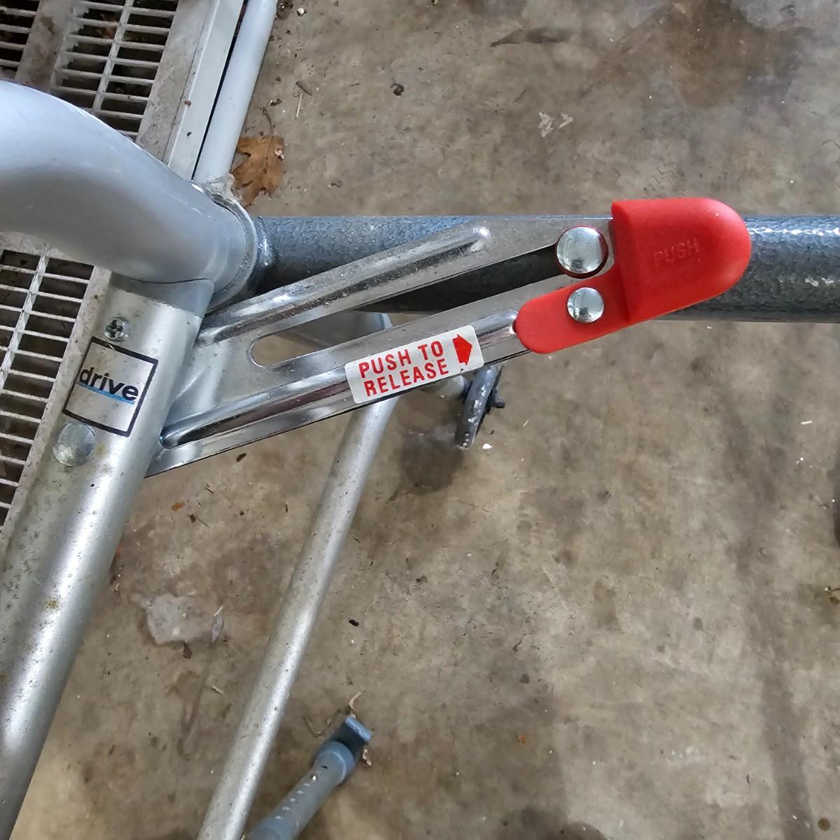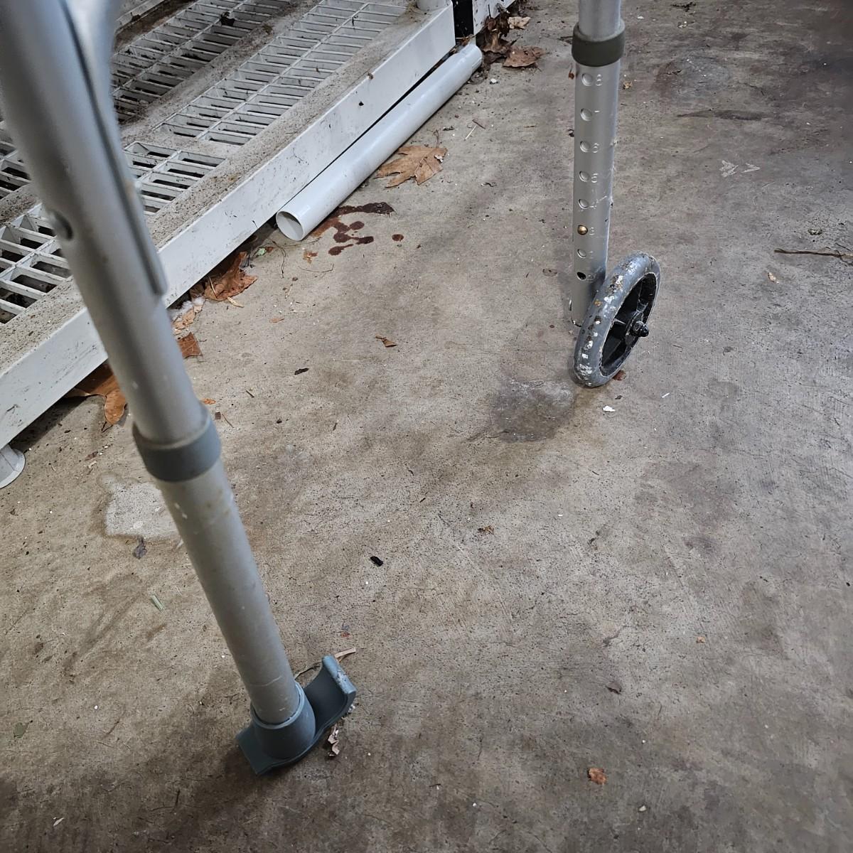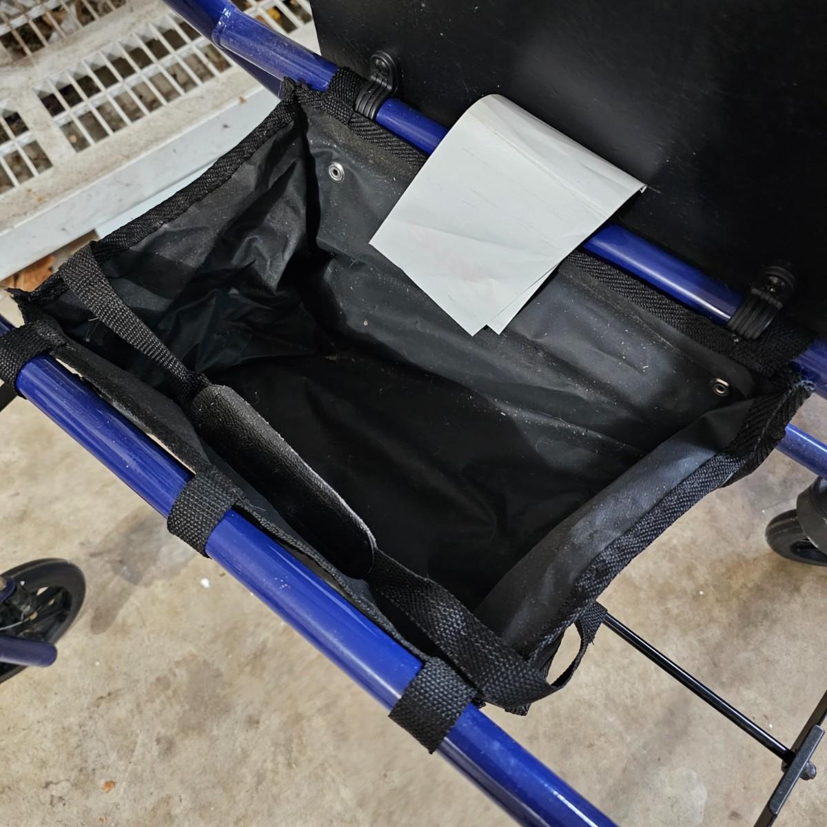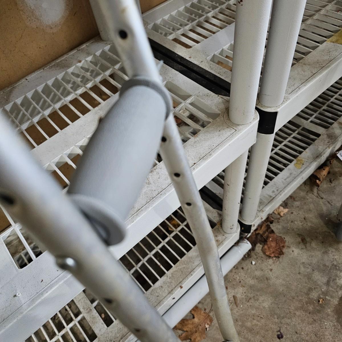 Walkers, crutches and more. Pair of aluminum Medline crutches, 8"x 50"H and adjustable. One adjustable hand cane with brown finish. A plastic shower chair that measures 25" x 19" x 32"H, also adjustable. Three walkers, one Drive unit with handles, brakes and seat. 23" x 24" x 36"H with 20" seat height and locking brake handle. Folds to 13" x 41". Two smaller walkers, one Drive is 20" x 16" x 29"H, comes with add on 5" wheel posts. Other item is 20" x 21" x 35"H, has wheels in front and skids in back. Finally a fingertip pulse oximiter, a cardio chek blood tester, a cold pack, extra cane tips and a blood pressure cuff without dial readout. See photos for details. Local pickup only.