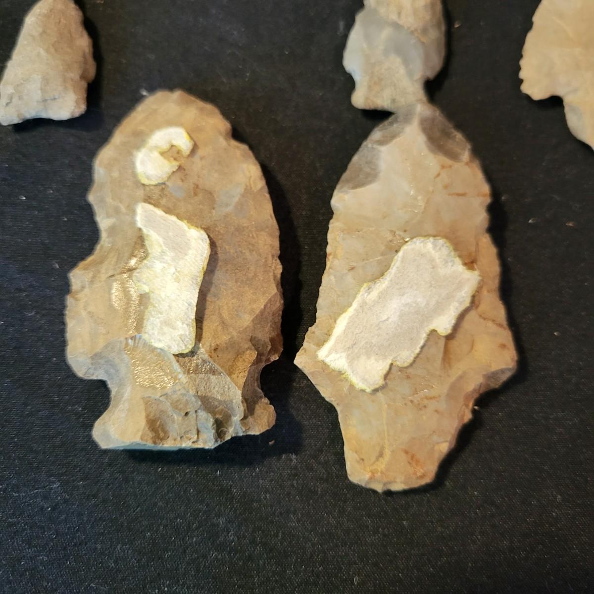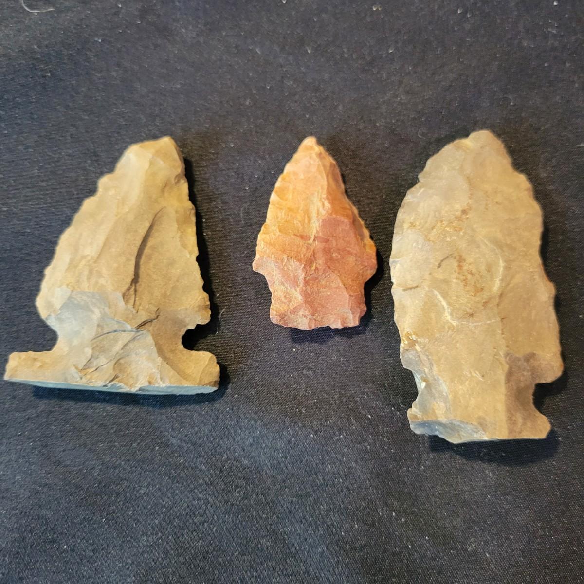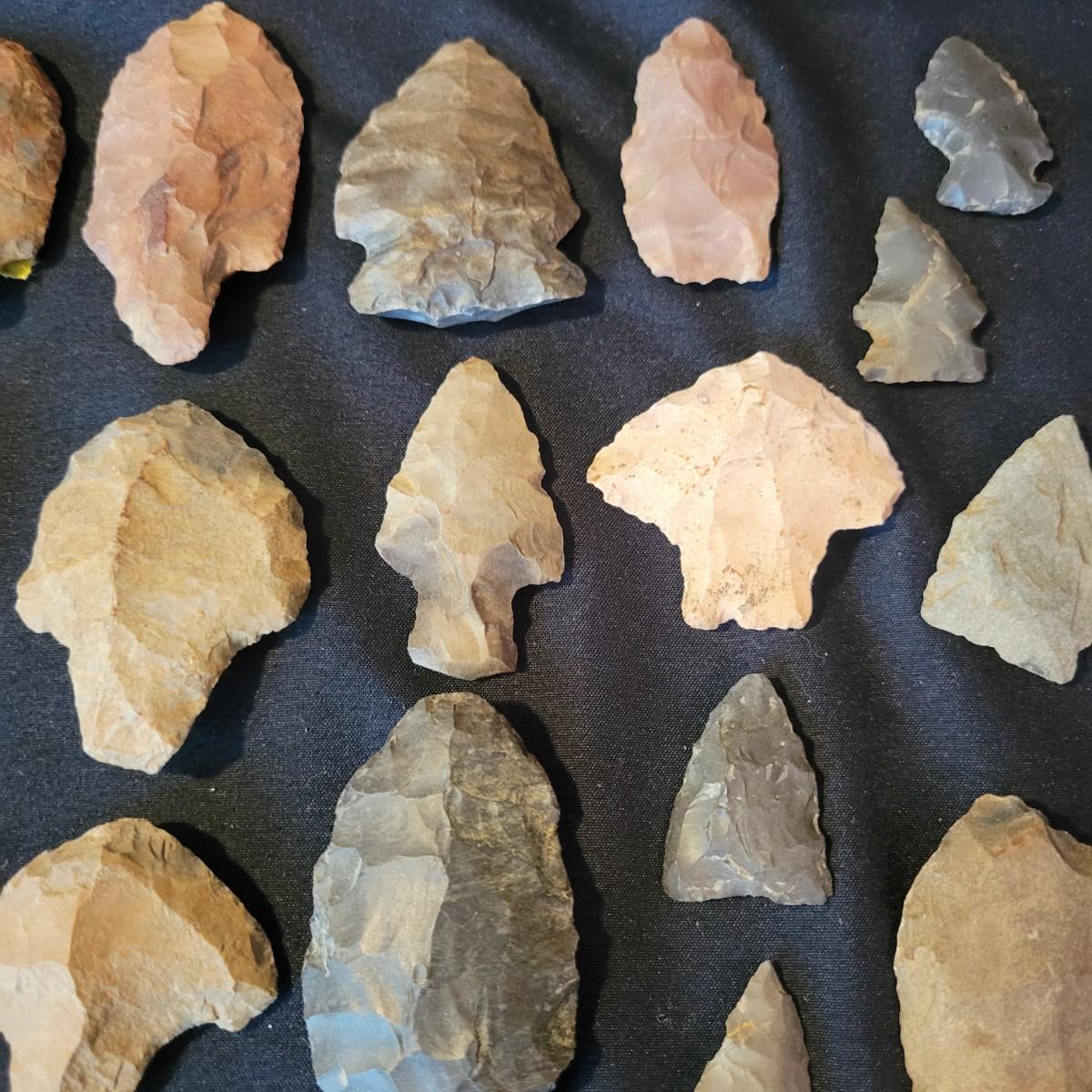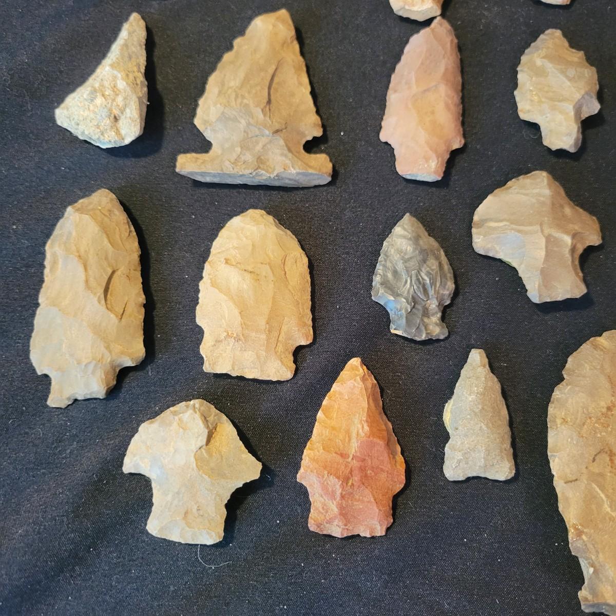 An assortment of over 35 arrowheads in a variety of sizes, conditions and materials. The largest pieces measure approximately 3" in length. These appear to have been glued to a board at some point, as there is residue on the backs of many of them. Shipping available