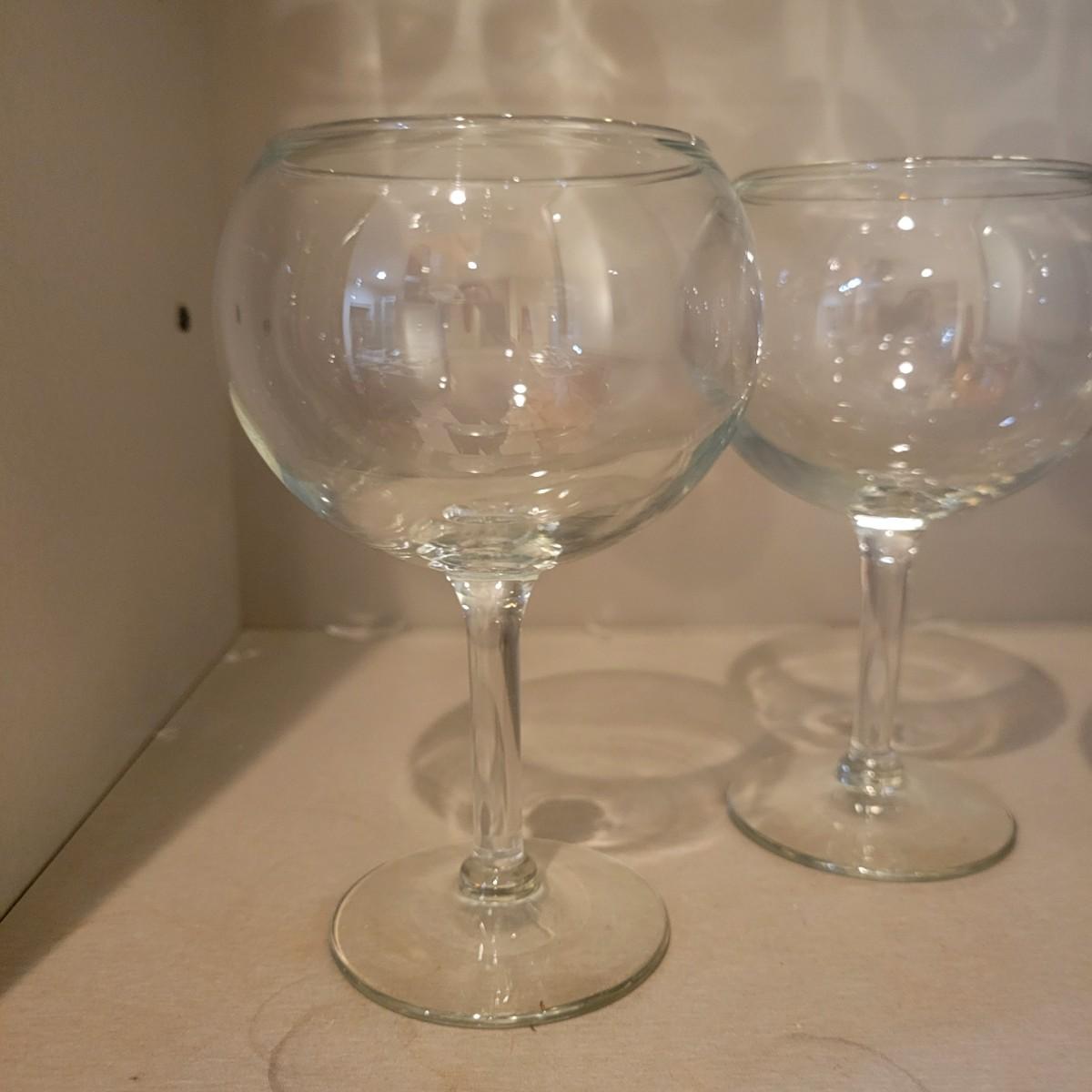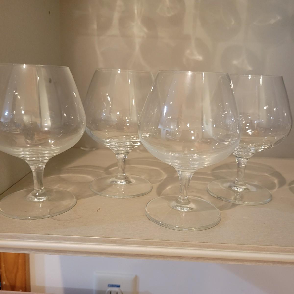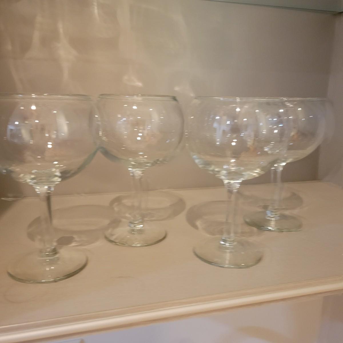 An assortment of bar glasses in a variety of shapes and sizes. These glasses range from pilsner glasses to sherry glasses and more. Tallest glasses measures approximately 9.5"H. Local pickup only