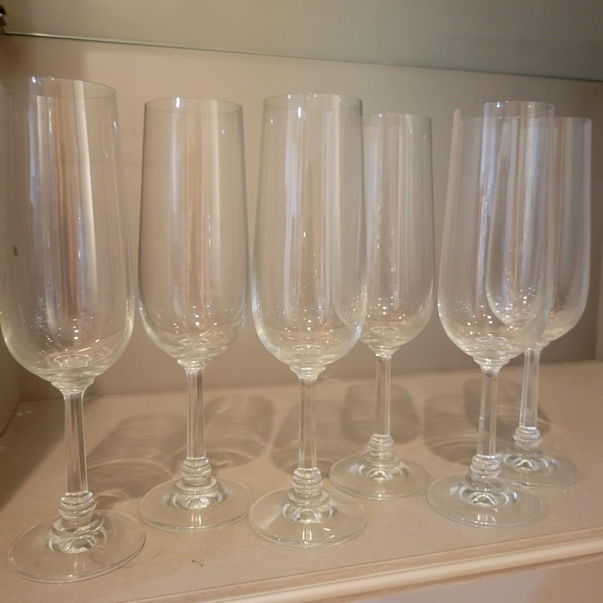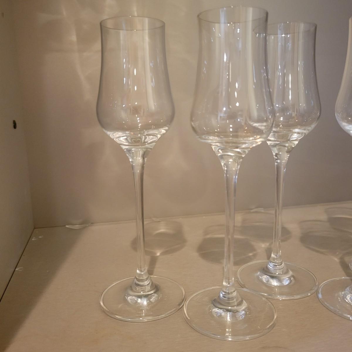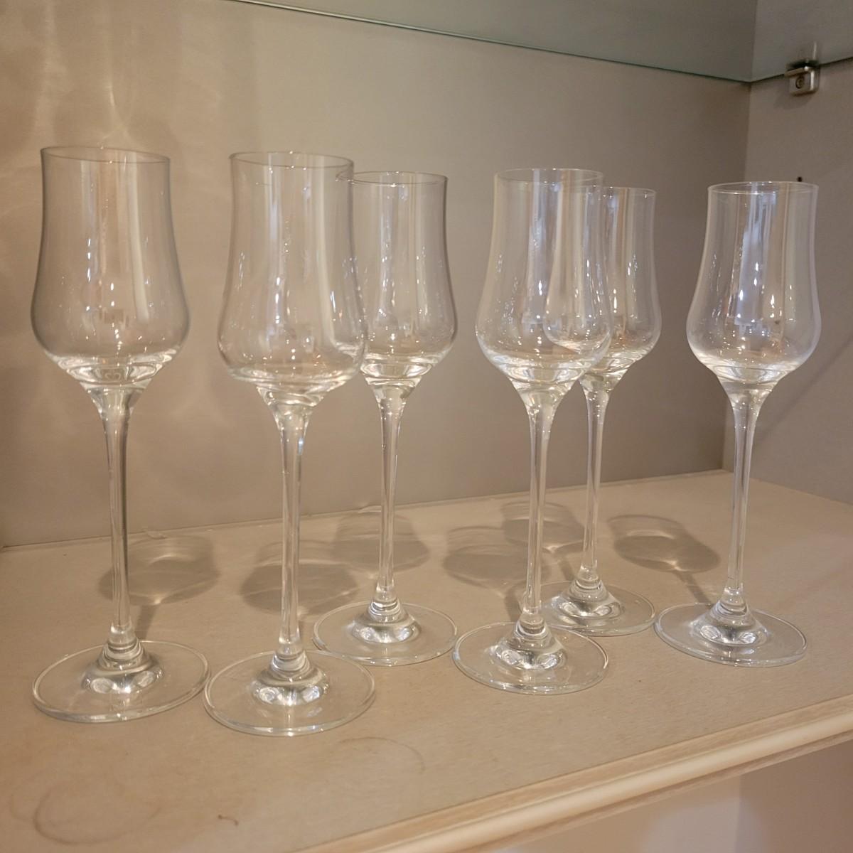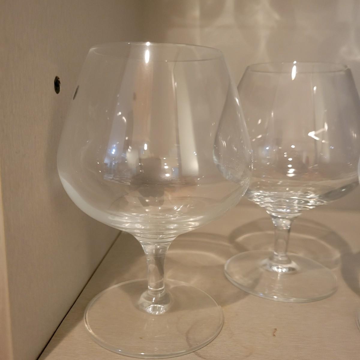 An assortment of bar glasses in a variety of shapes and sizes. These glasses range from pilsner glasses to sherry glasses and more. Tallest glasses measures approximately 9.5"H. Local pickup only
