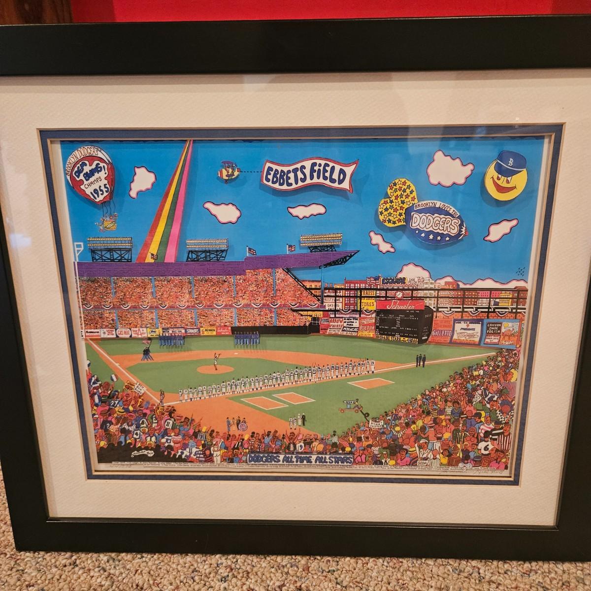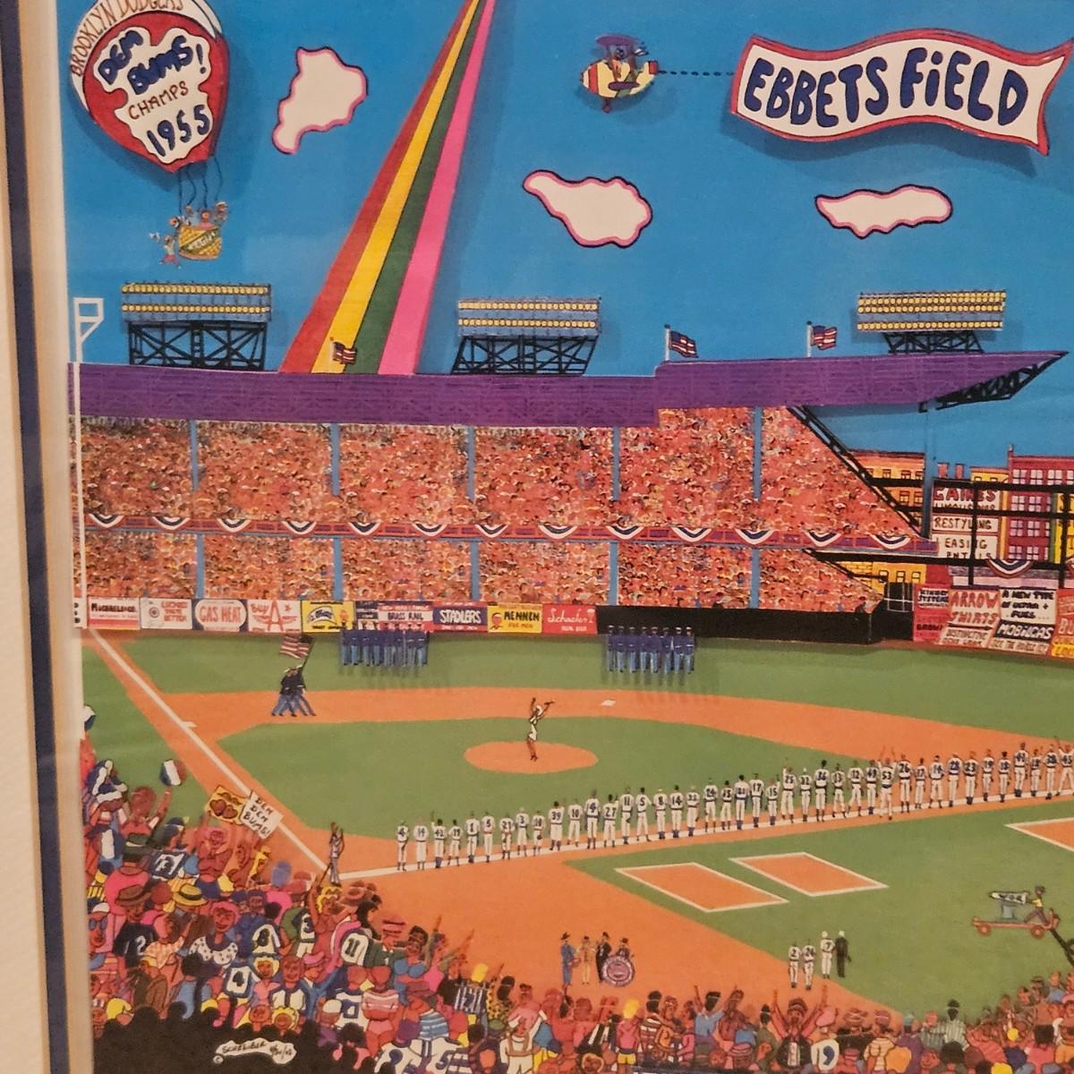 An assortment of baseball books, art, puzzles and games. Included is a pencil signed lithograph by Stan Cline that includes a certificate of authenticity and is double matted with a stained wooden frame and measures approximately 18.5" x 16". There is also a 3D signed and numbered print by Al Shreiber of Ebbets Field that is double matted with a wooden, black Formica frame. This lot also includes multiple books, puzzles and a game. Shipping available. Shipping can be costly. We suggest contacting our preferred local shipping provider, Postage Express, with dimensions and getting an estimate before bidding: (828) 670-5501 or shipping@postageexpressnc.com
