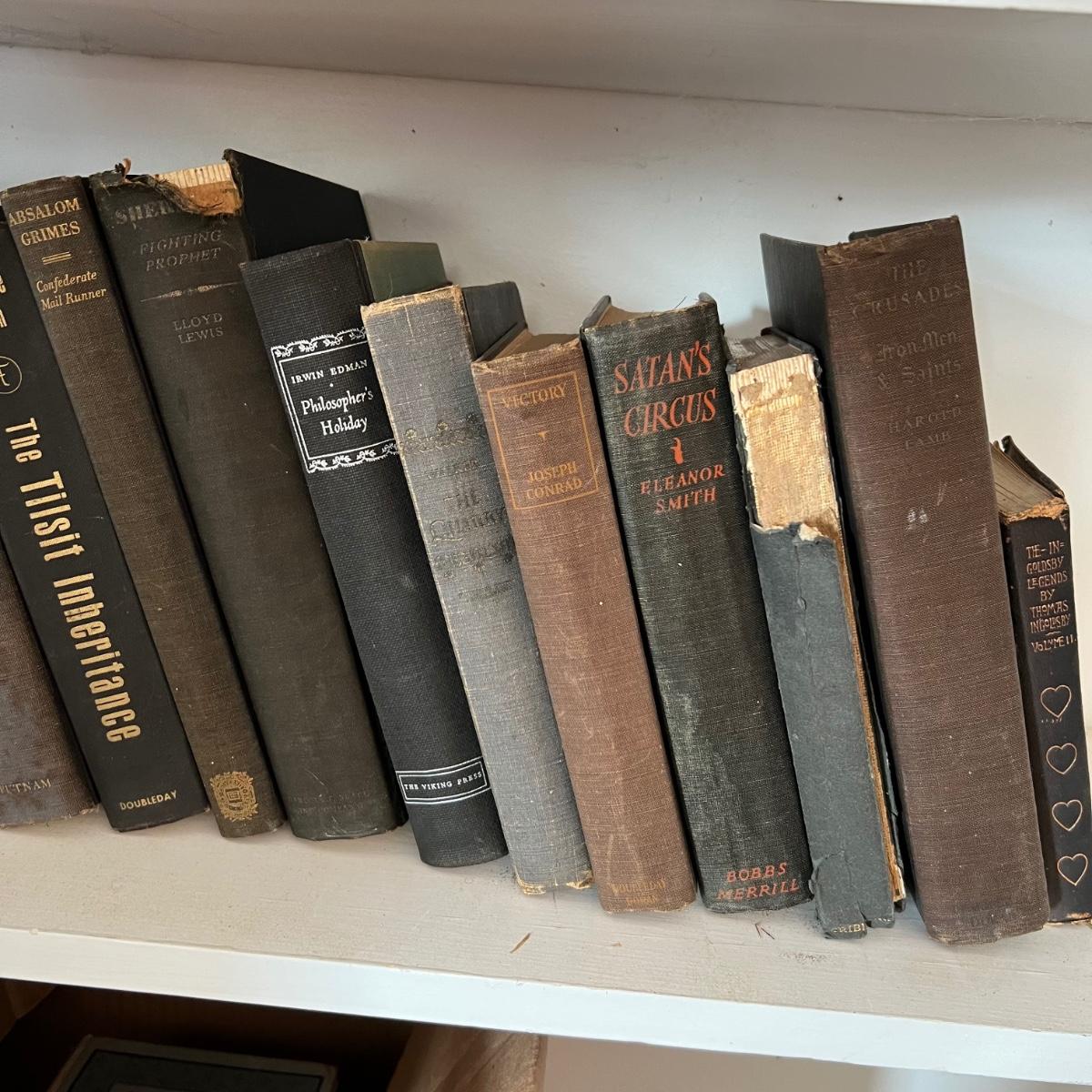 Over 20 books that all have dark covers. A sampling of copyright pages have been included in photos but if you want more information please schedule a preview appointment for September 16.
