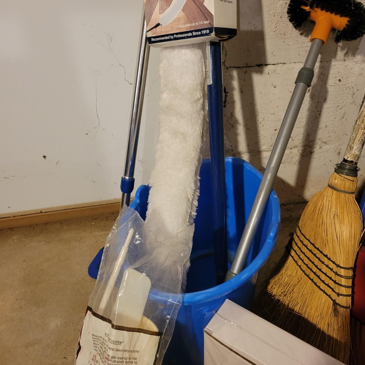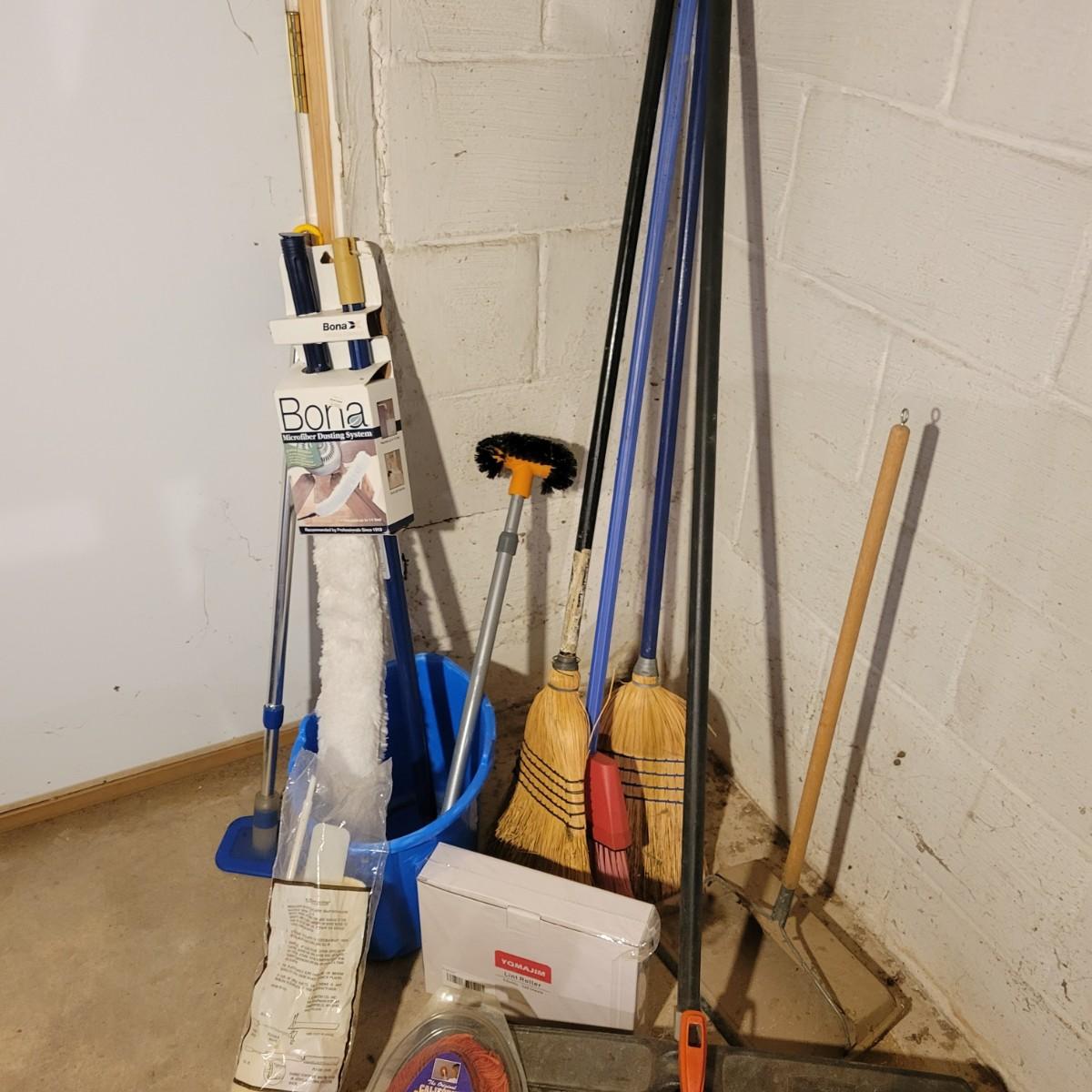 Assortment of Brooms, Dusters, and More (BL-DW)